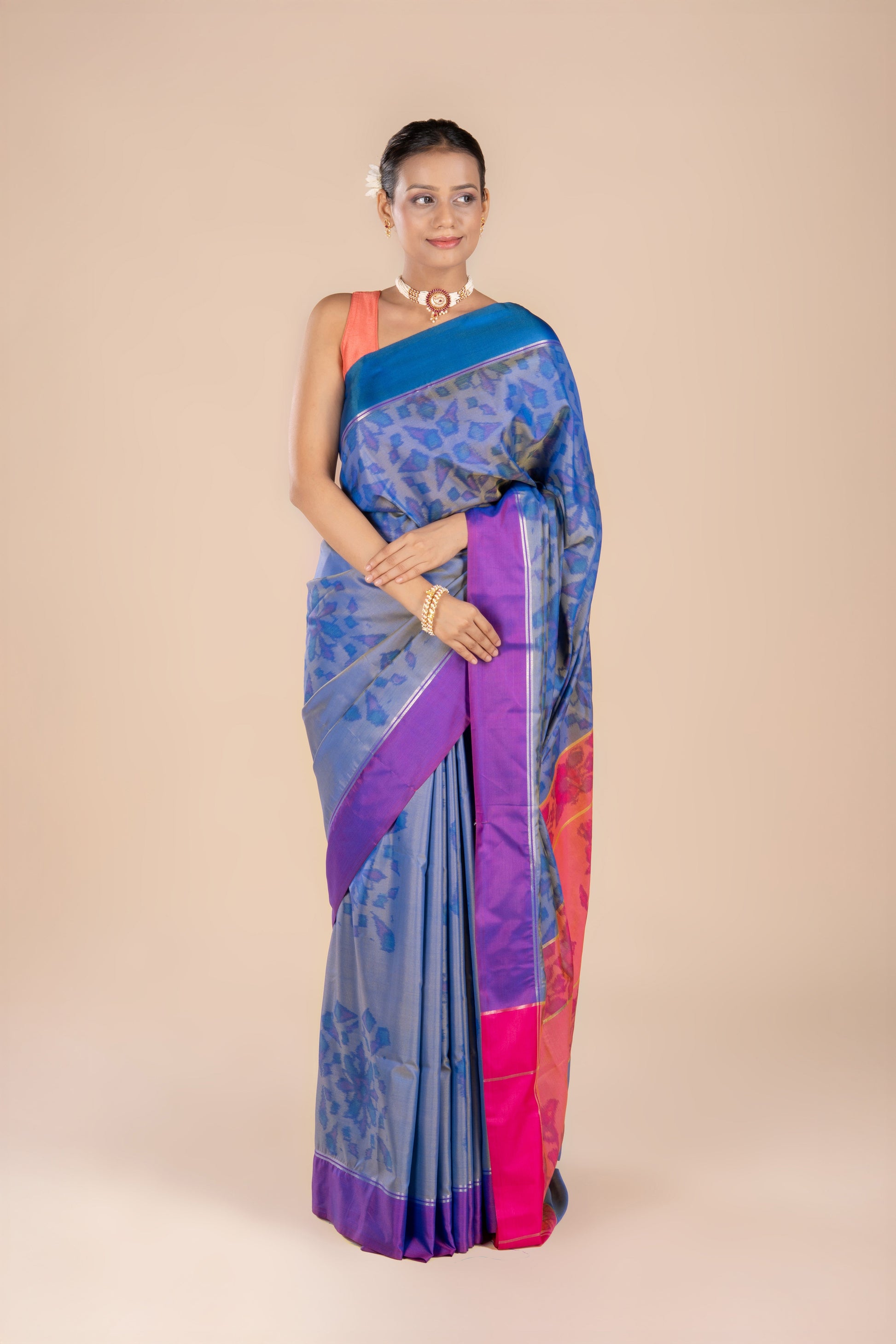 This Indigo Blue Katan Silk Patola Saree is a masterpiece that reflects timeless craftsmanship. Woven from premium fabrics, it offers a rich texture and graceful drape. An ideal pick for weddings, festive gatherings, or grand celebrations. Pair it with antique jewellery for a heritage-inspired look.