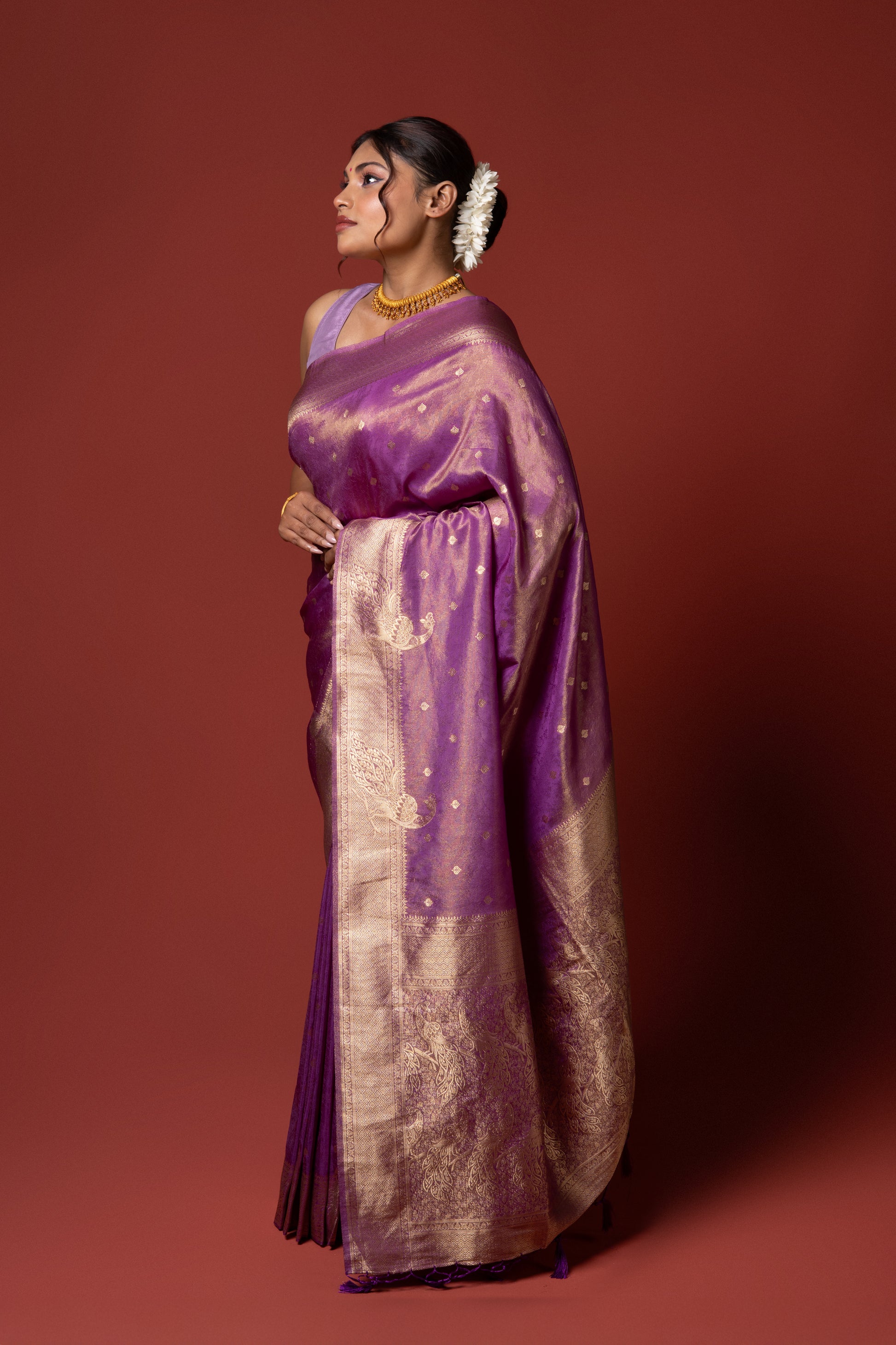 Elevate your wardrobe with our exclusive Lavendar Tissue Silk Saree. Featuring a beautiful Lavendar hue, this piece effortlessly blends timeless tradition with modern elegance. Ideal for festive occasions or everyday sophistication. Shop now and make it yours.