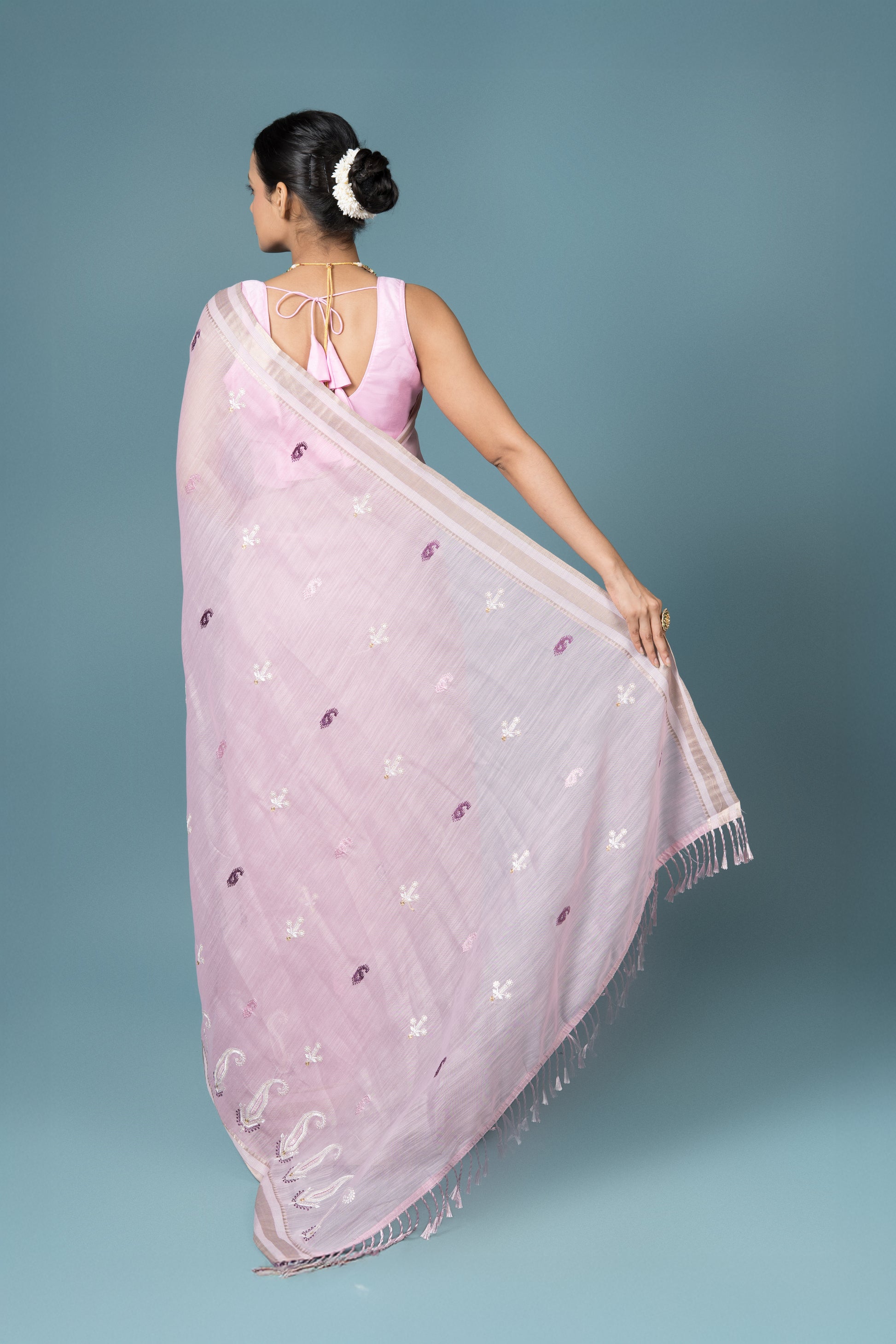 Simple yet elegant, this Light Pink Cotton Saree with Thread Work from Hastakala Exclusive is designed for comfort and style. Made from pure cotton, the saree is lightweight and breathable, making it an ideal choice for daily wear, summer outings, or office wear.
