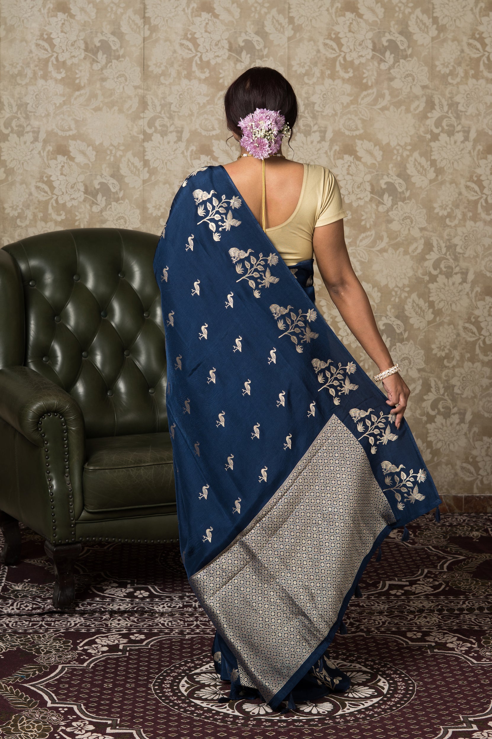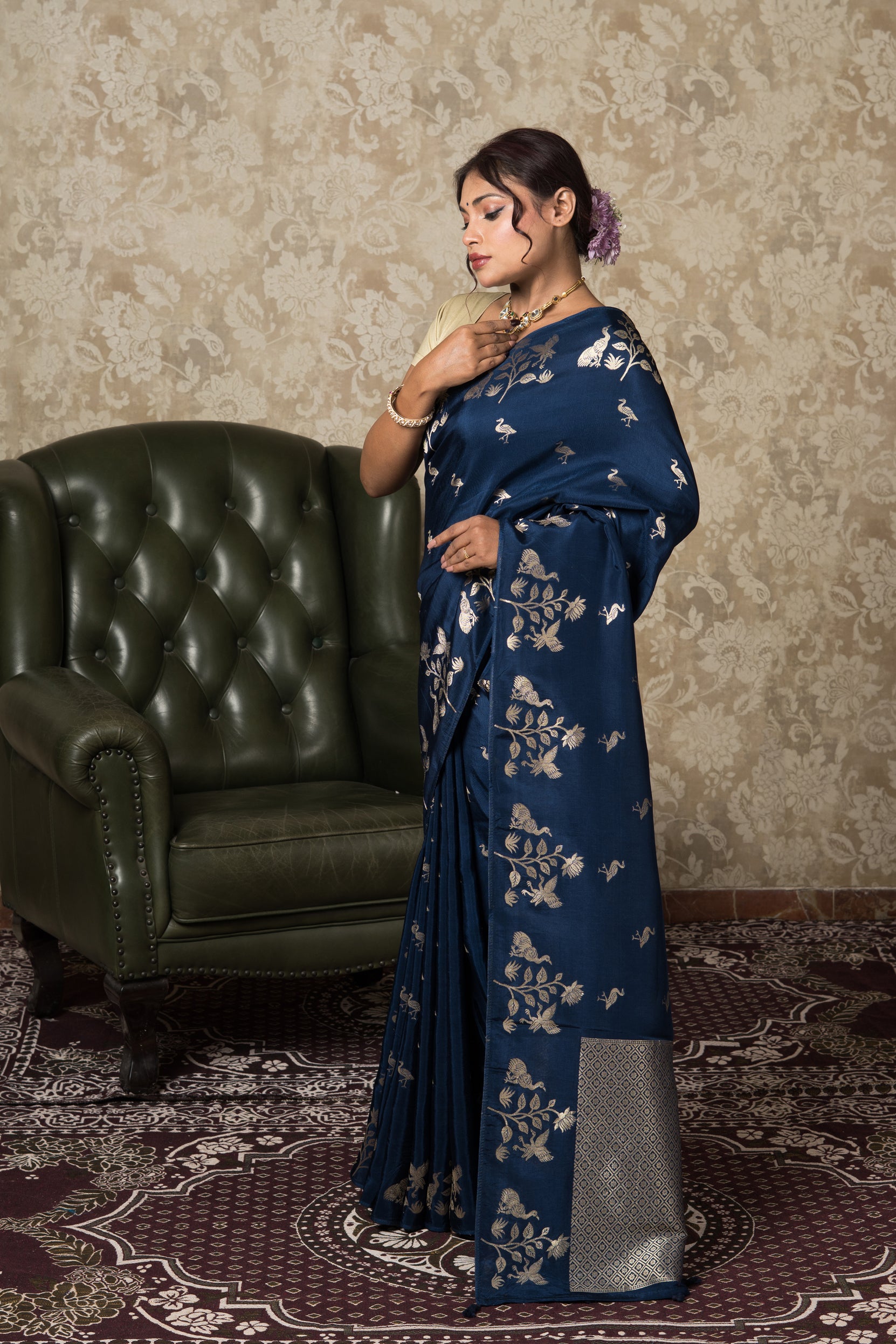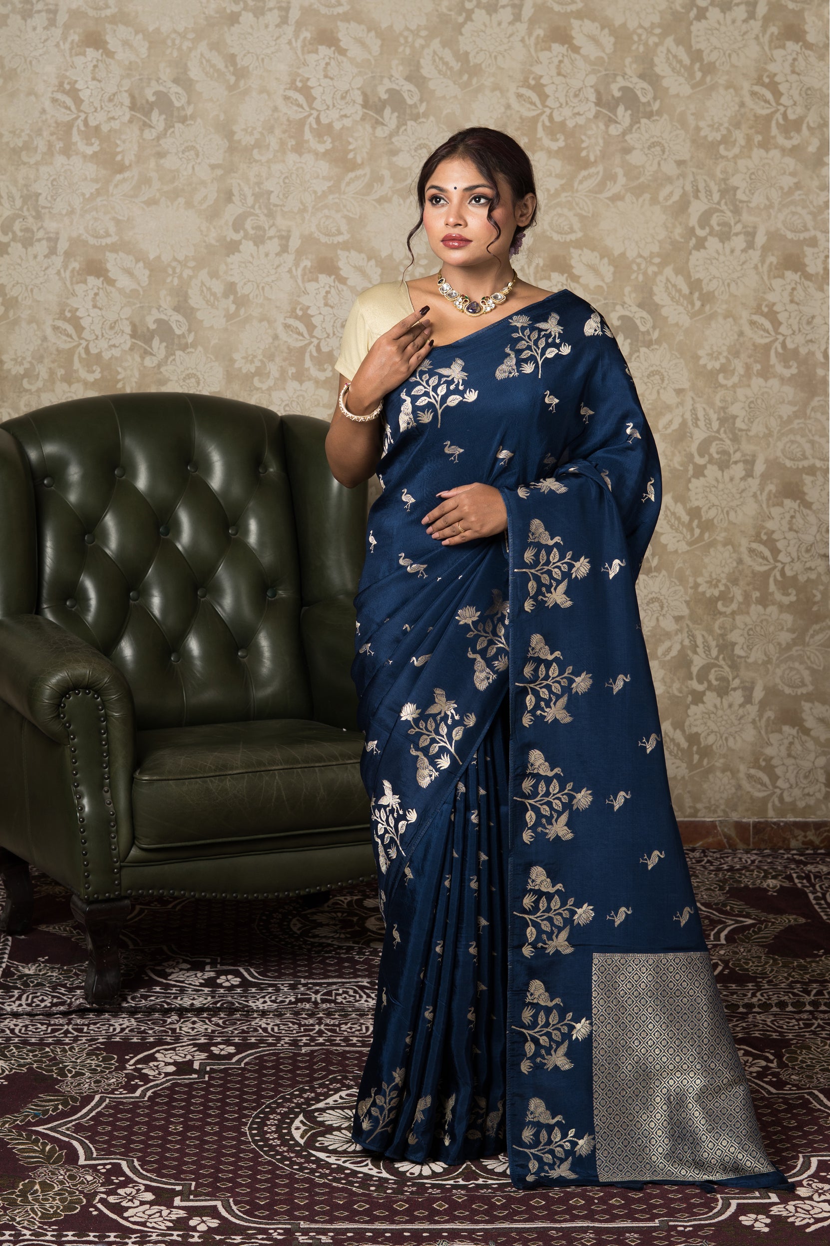 Elevate your wardrobe with our exclusive Midnight Blue Dola Silk Saree. Featuring a beautiful Midnight Blue hue, this piece effortlessly blends timeless tradition with modern elegance. Ideal for festive occasions or everyday sophistication. Shop now and make it yours.