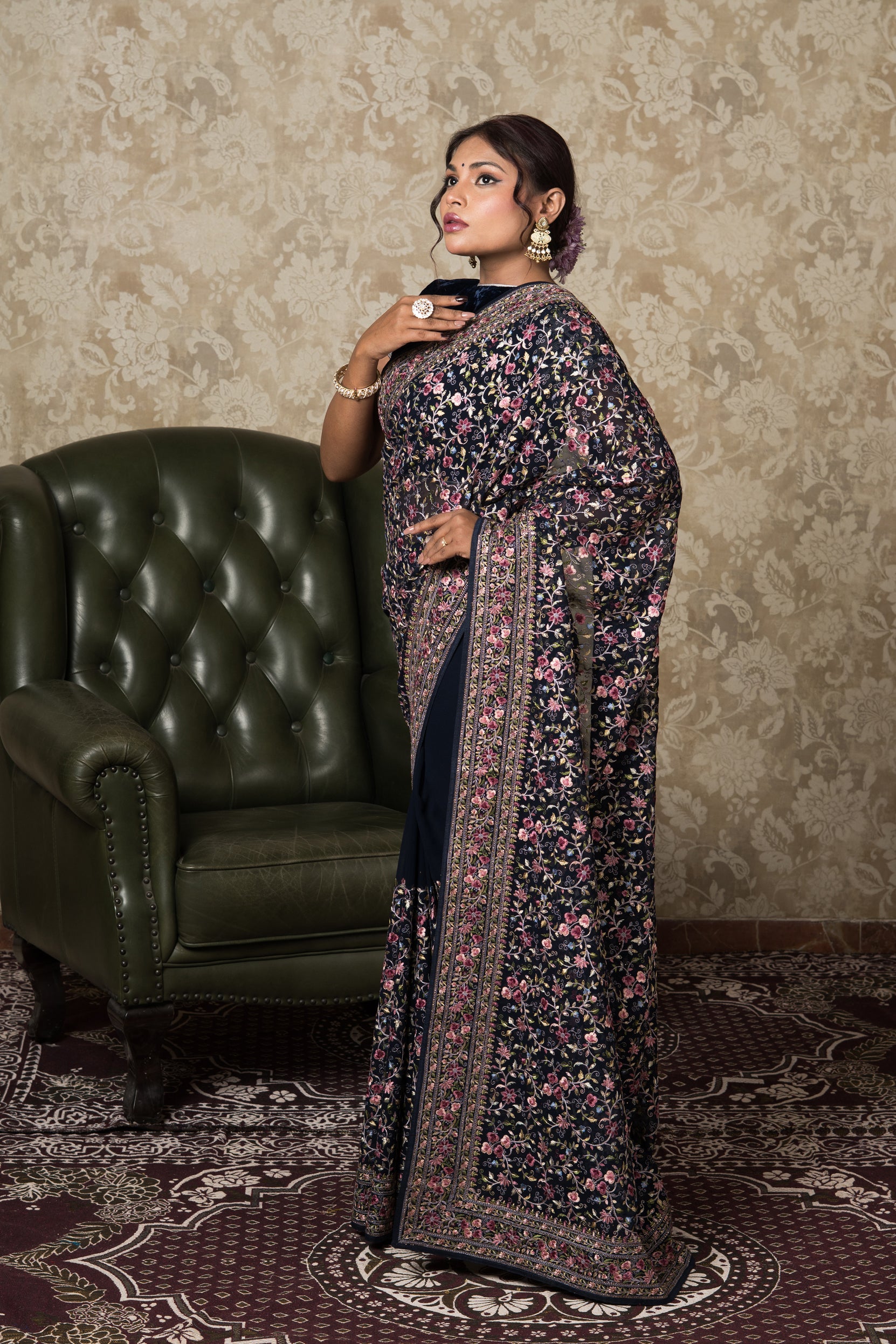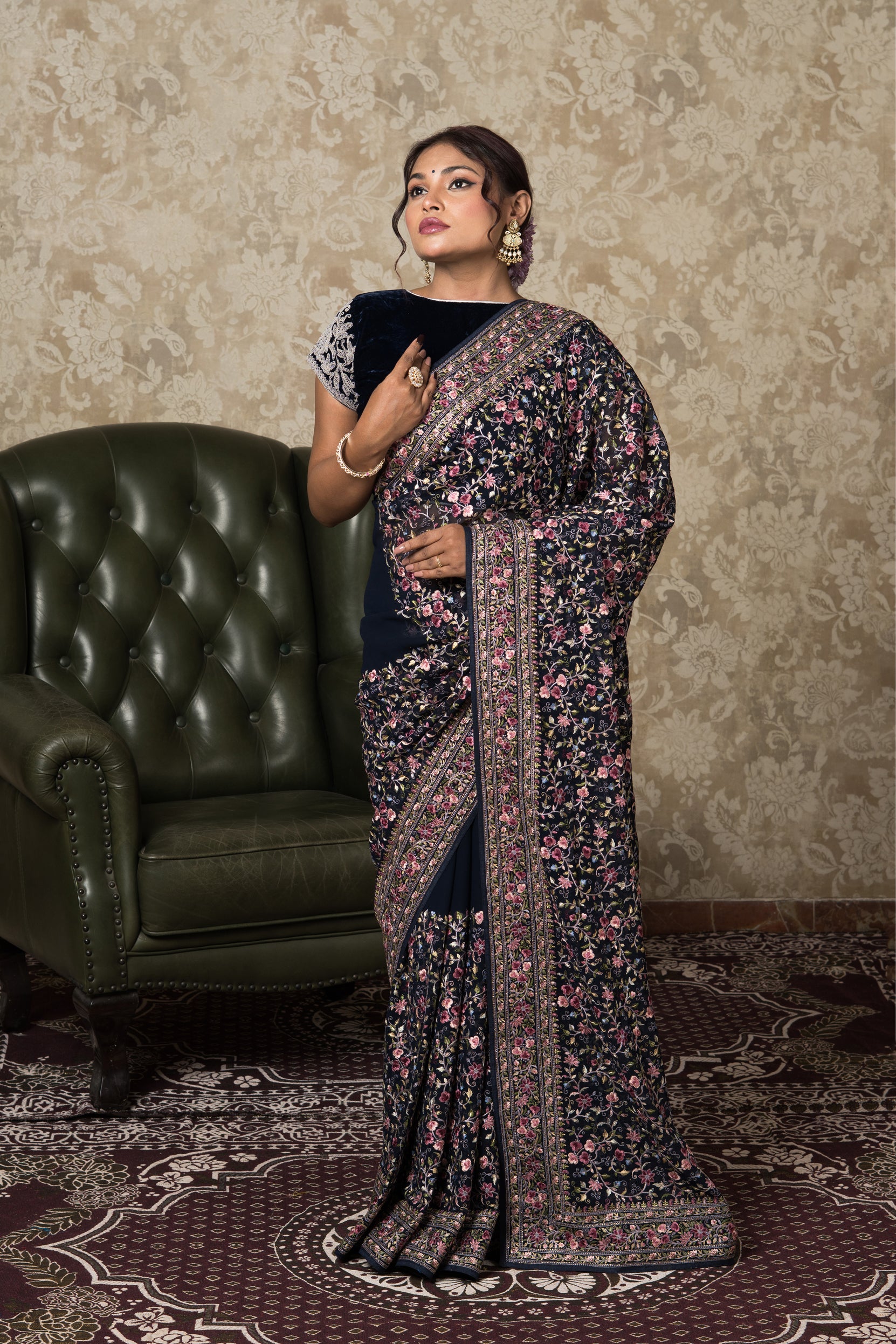 Elevate your wardrobe with our exclusive Navy Blue Georgette Pashmina Saree. Featuring a beautiful Navy Blue hue, this piece effortlessly blends timeless tradition with modern elegance. Ideal for festive occasions or everyday sophistication. Shop now and make it yours.