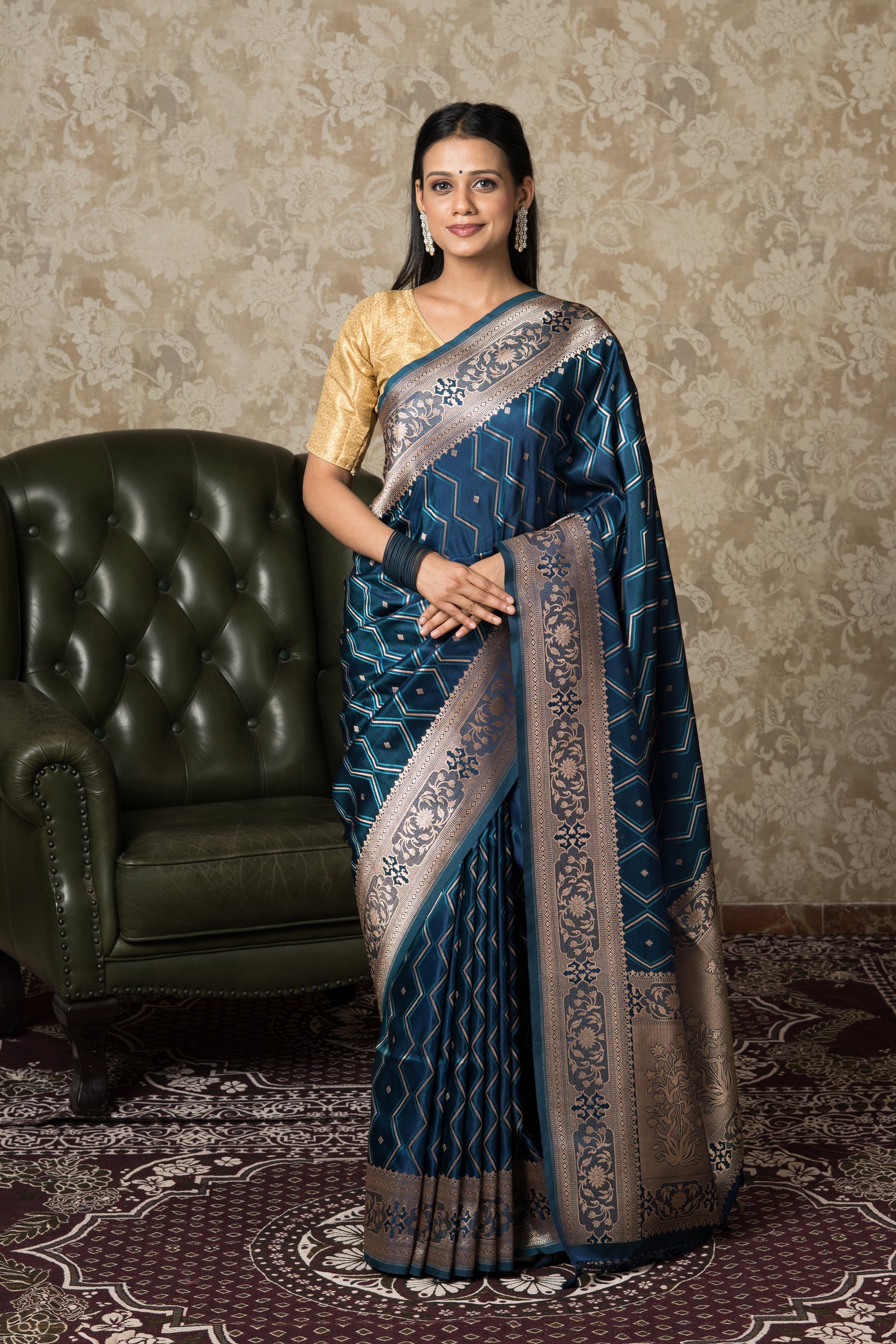 Elevate your wardrobe with our exclusive Navy Blue Katan Silk Banarasi Saree. Featuring a beautiful Navy Blue hue, this piece effortlessly blends timeless tradition with modern elegance. Ideal for festive occasions or everyday sophistication. Shop now and make it yours.