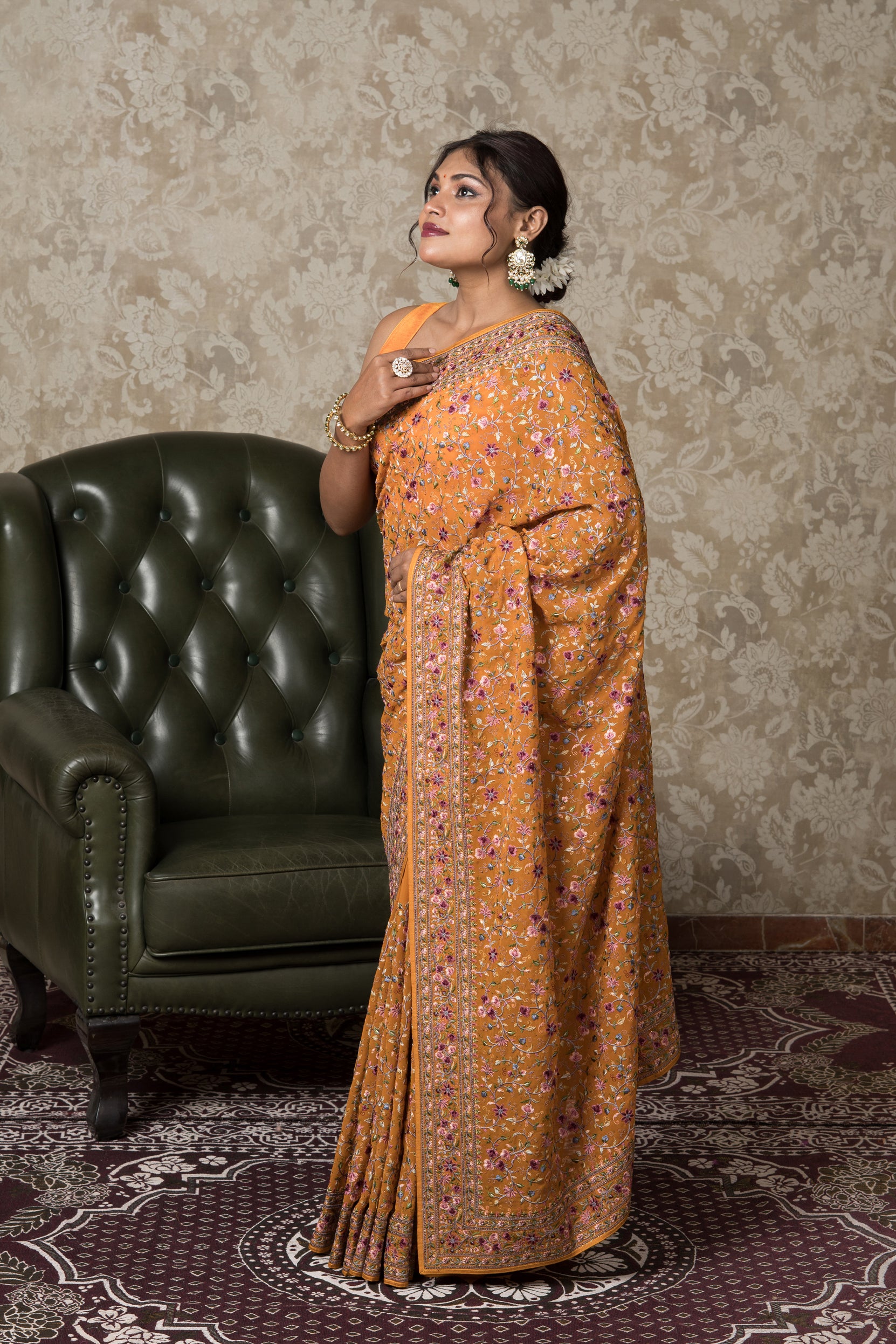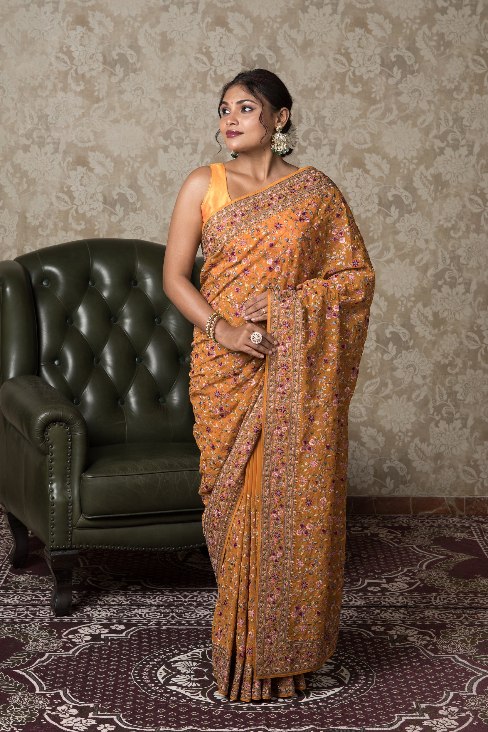 Orange Georgette Pashmina Saree