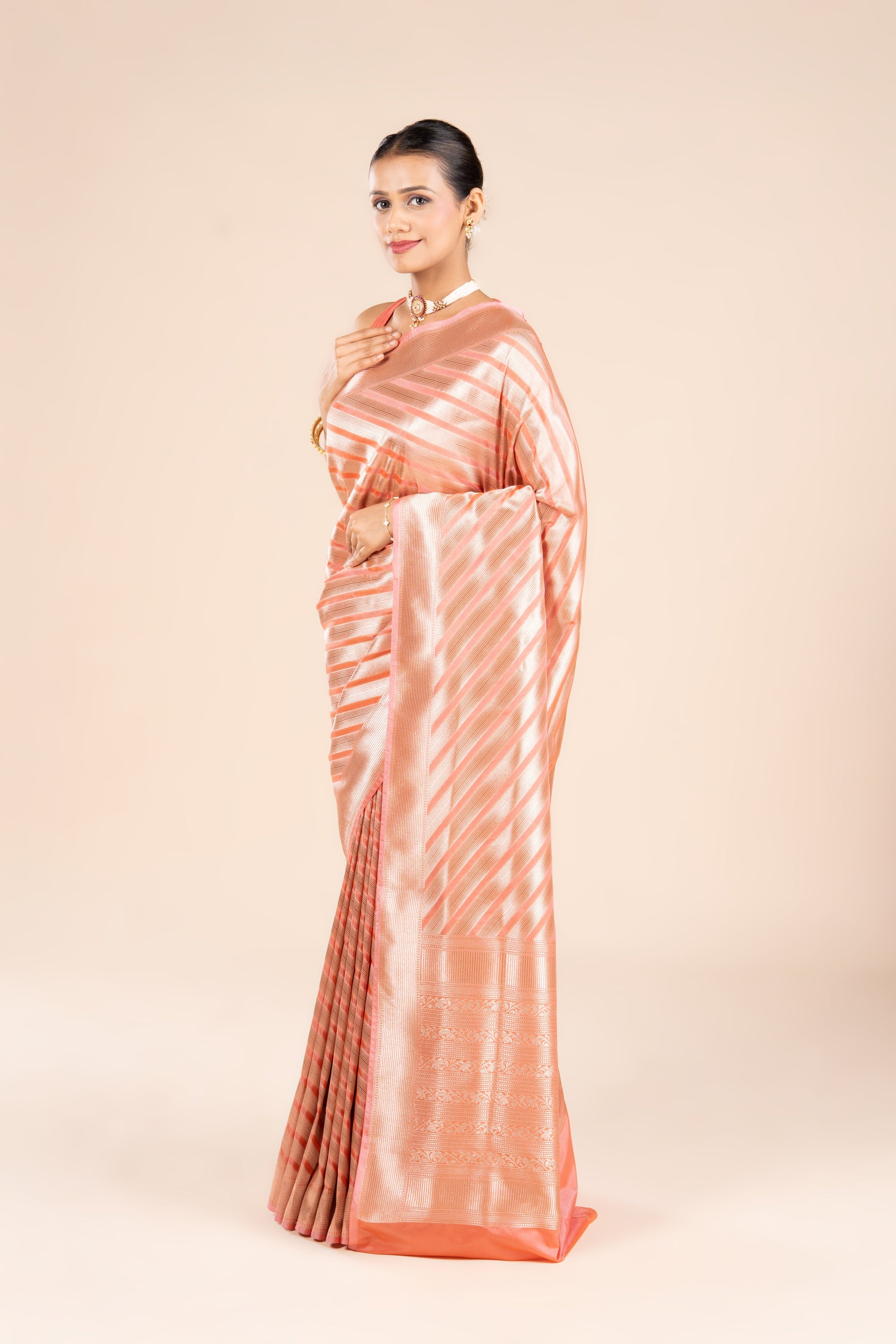 Turn heads at any celebration with this charming Orange Katan Silk Saree. The high-quality weave provides a fluid drape and an elegant fall. Suited for traditional rituals, engagements, and festive evenings. Complement it with elegant bangles and earrings for a regal finish.