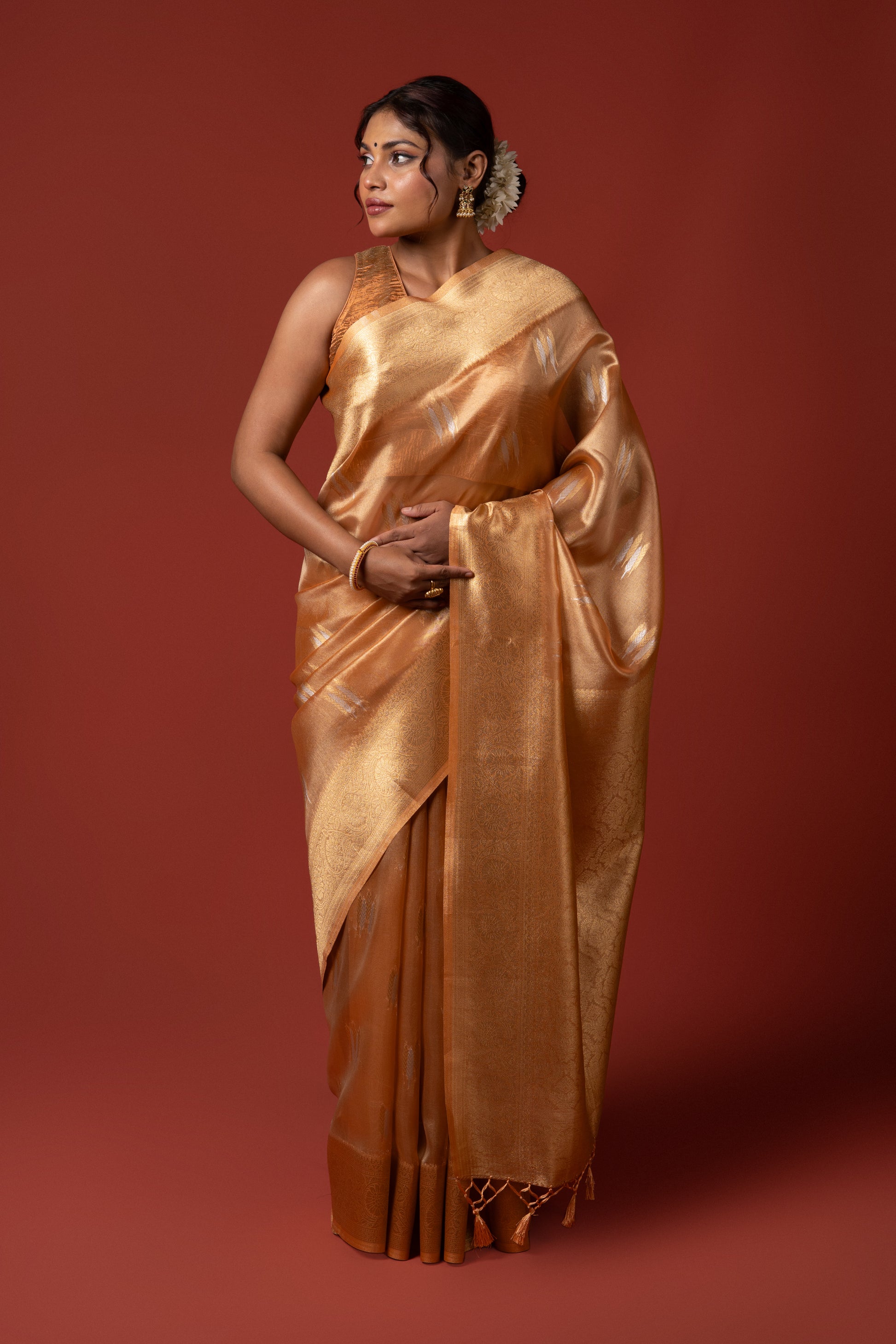 Orange Tissue Silk Saree
