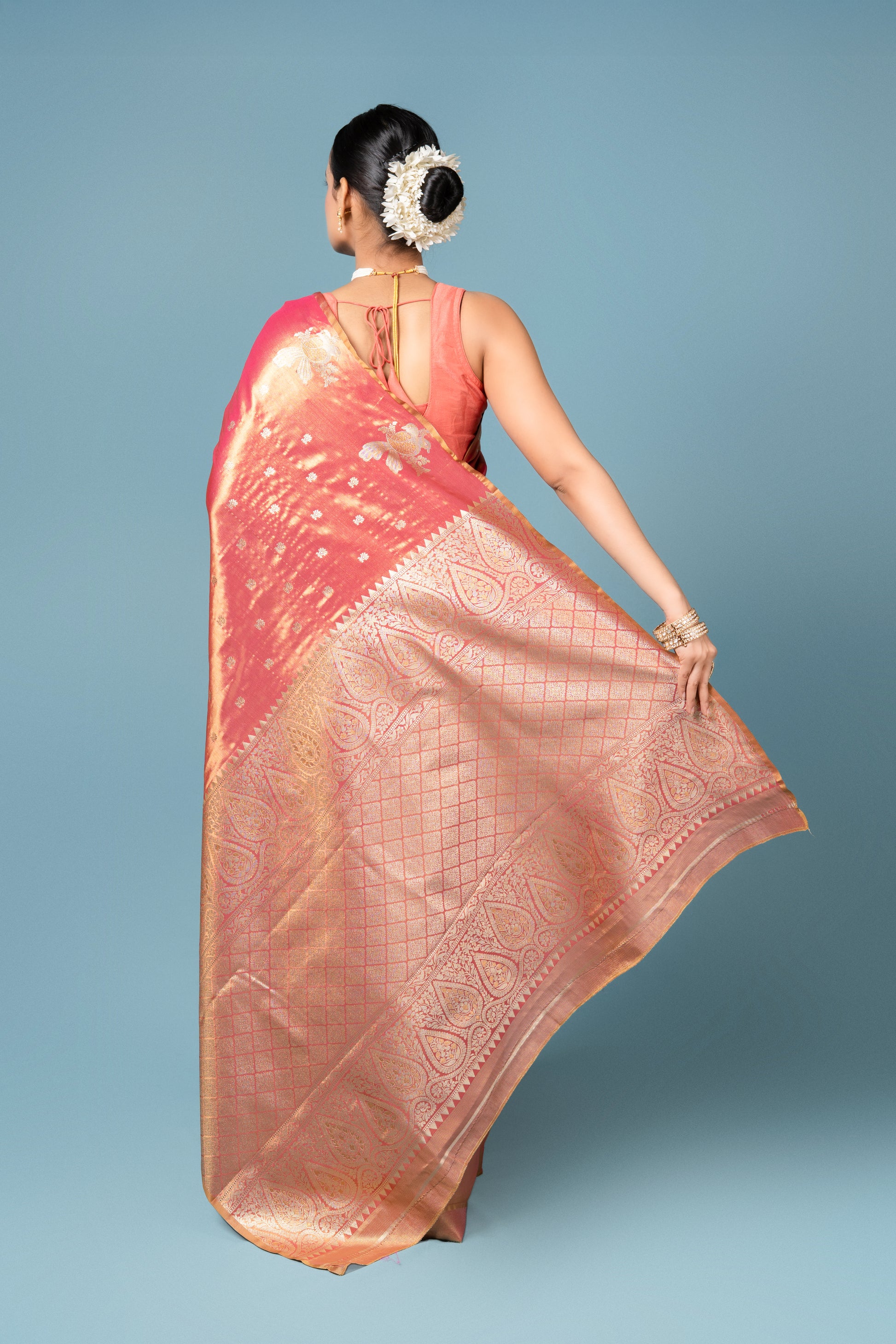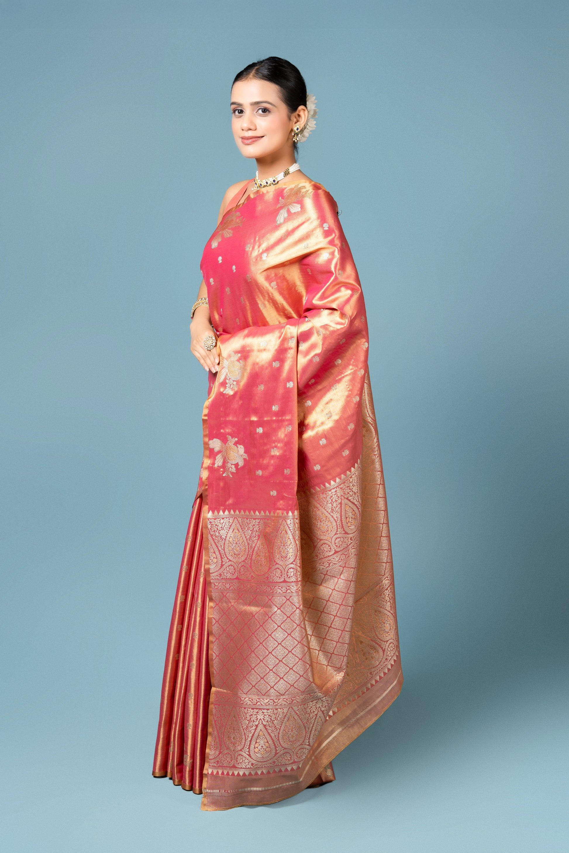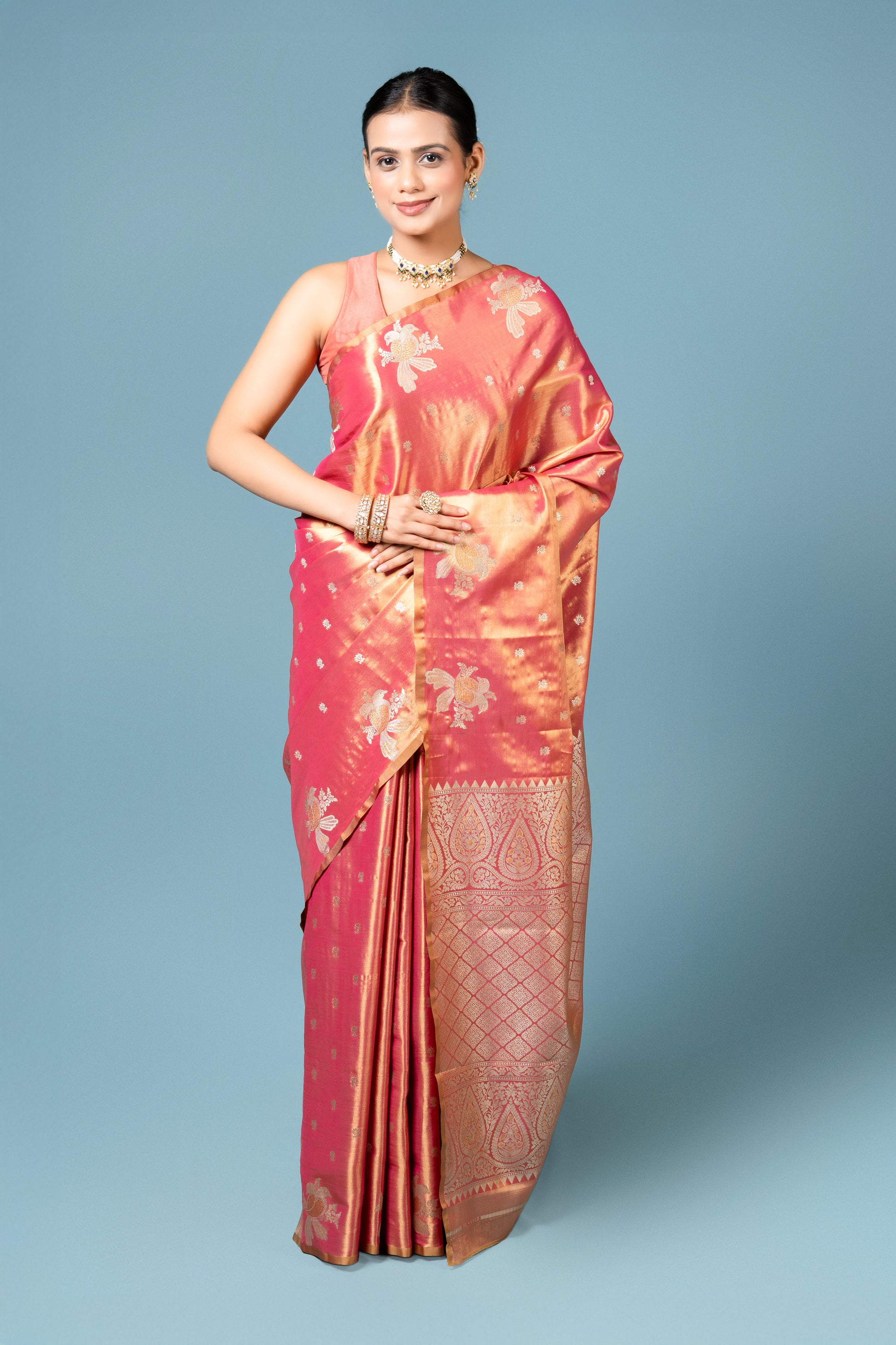 Elevate your wardrobe with our exclusive Orange Tissue Silk Saree. Featuring a beautiful Light Yellow hue, this piece effortlessly blends timeless tradition with modern elegance. Ideal for festive occasions or everyday sophistication. Shop now and make it yours.
