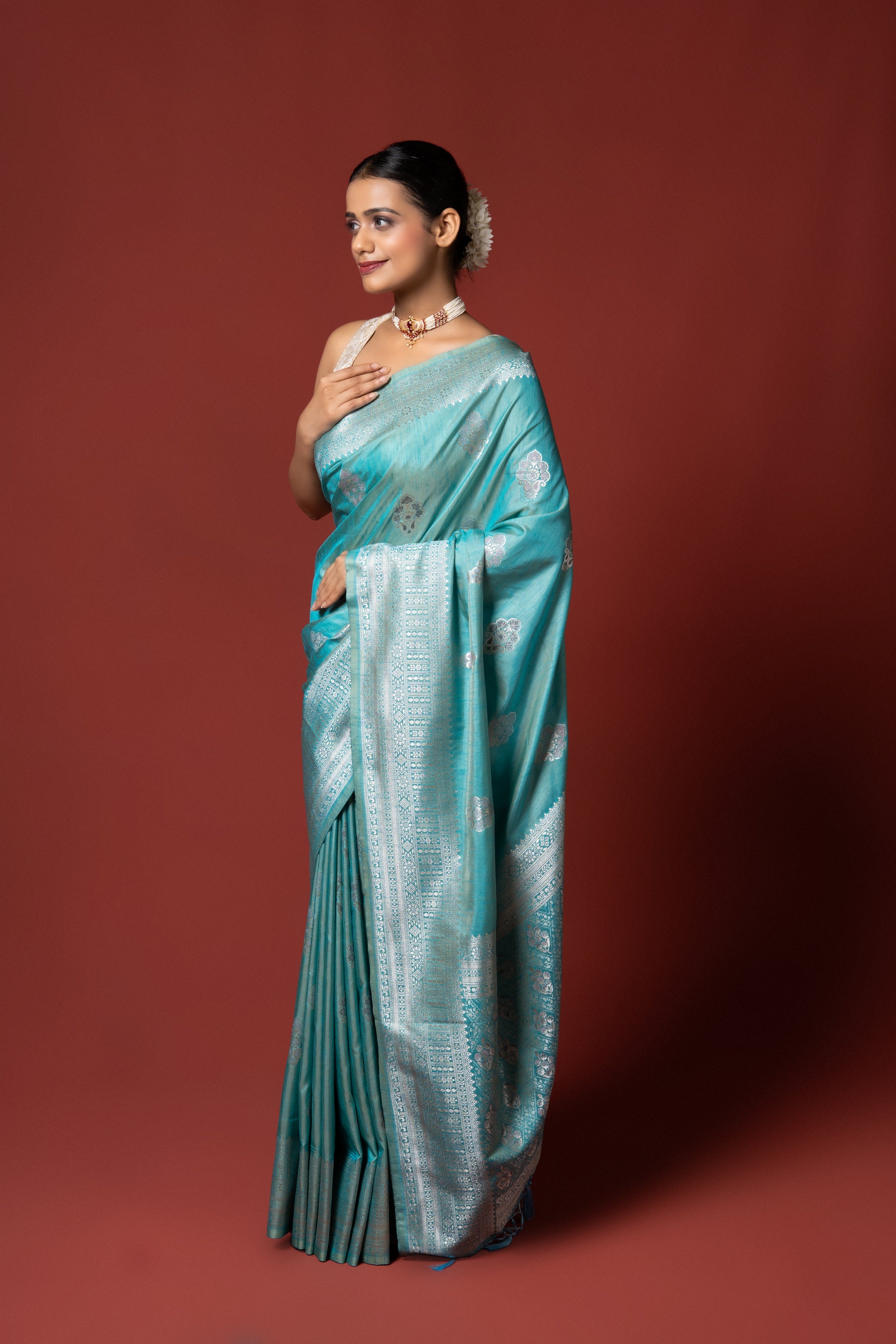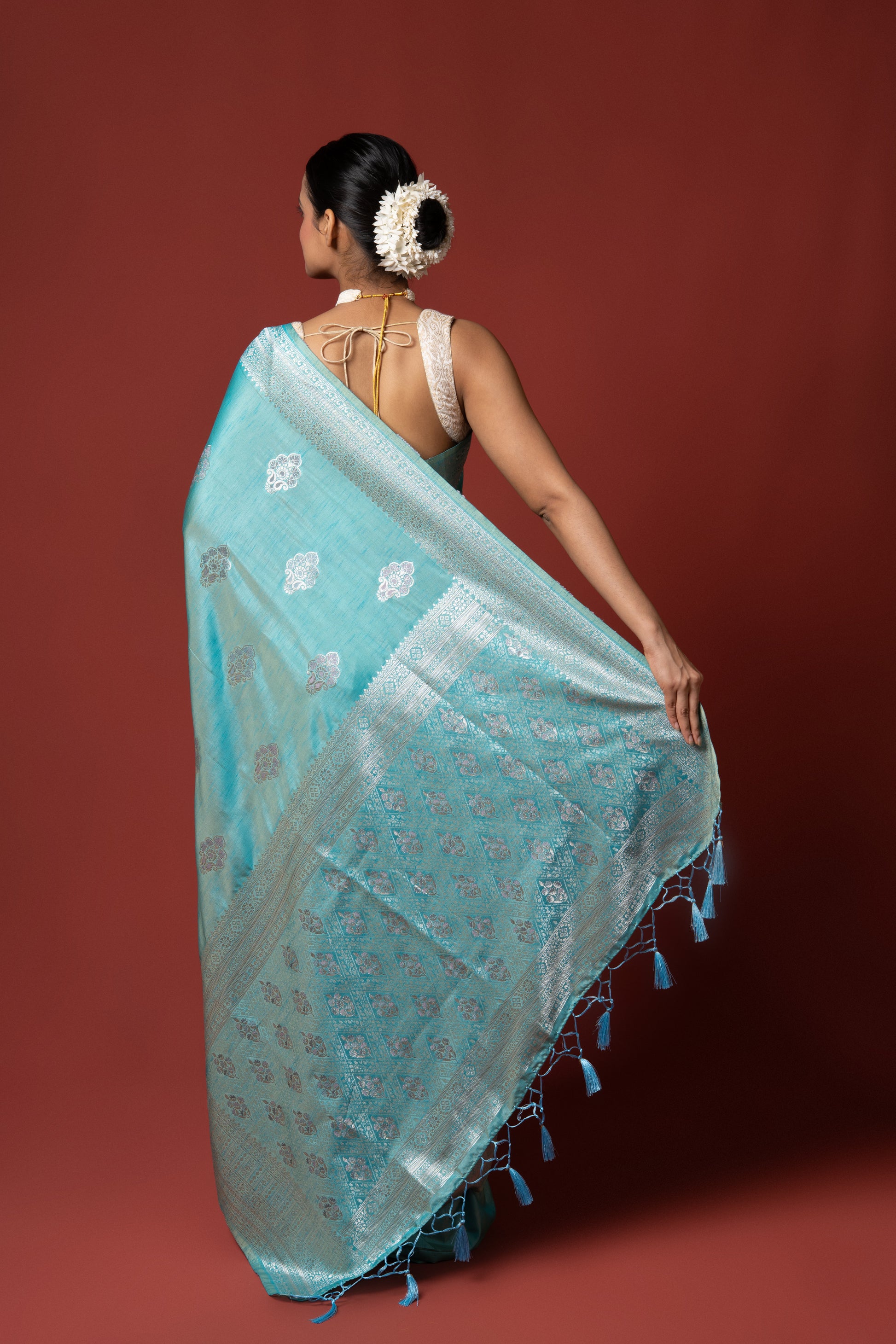 Elevate your wardrobe with our exclusive Pastel Blue Tissue Silk Saree. Featuring a beautiful Light Blue hue, this piece effortlessly blends timeless tradition with modern elegance. Ideal for festive occasions or everyday sophistication. Shop now and make it yours.