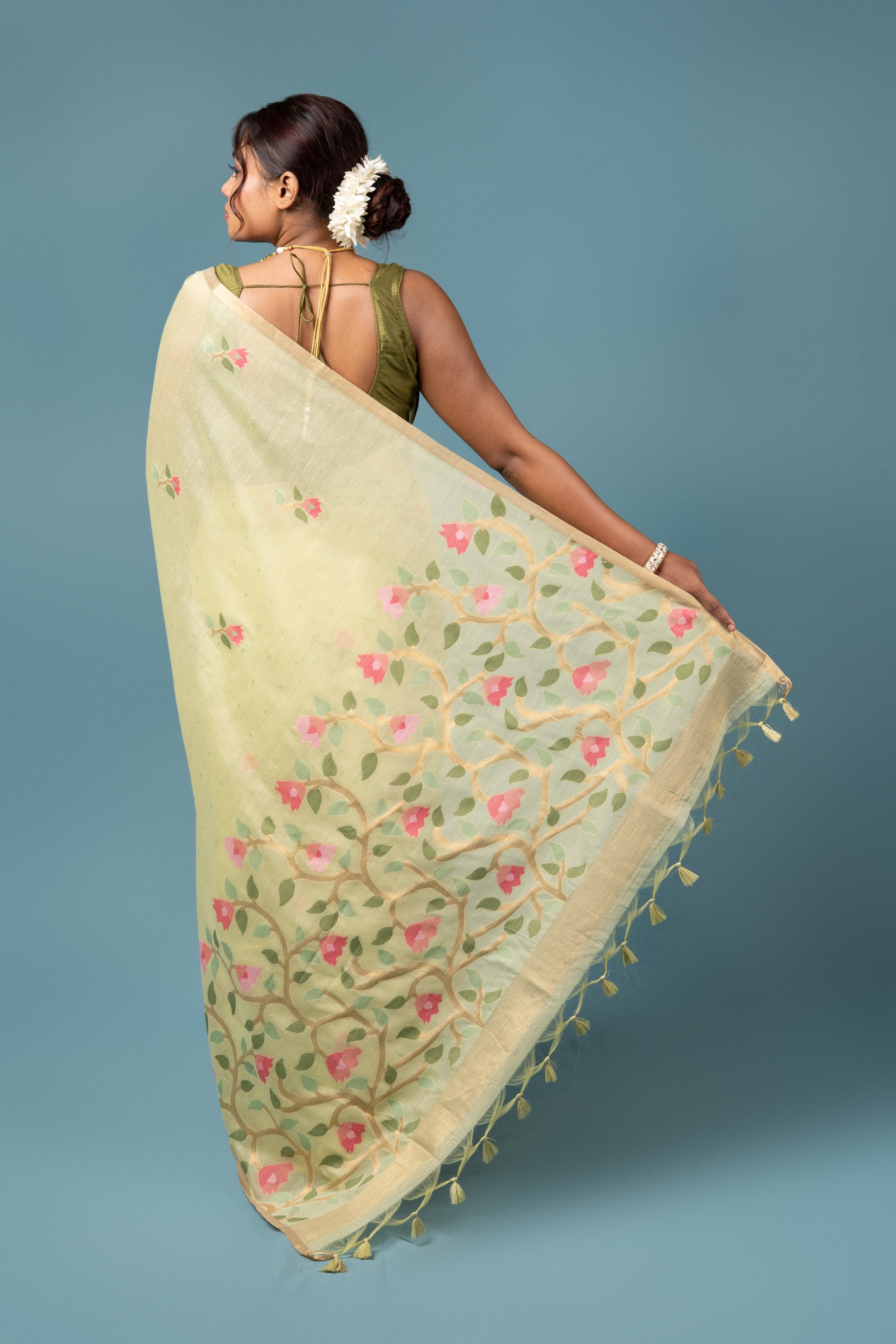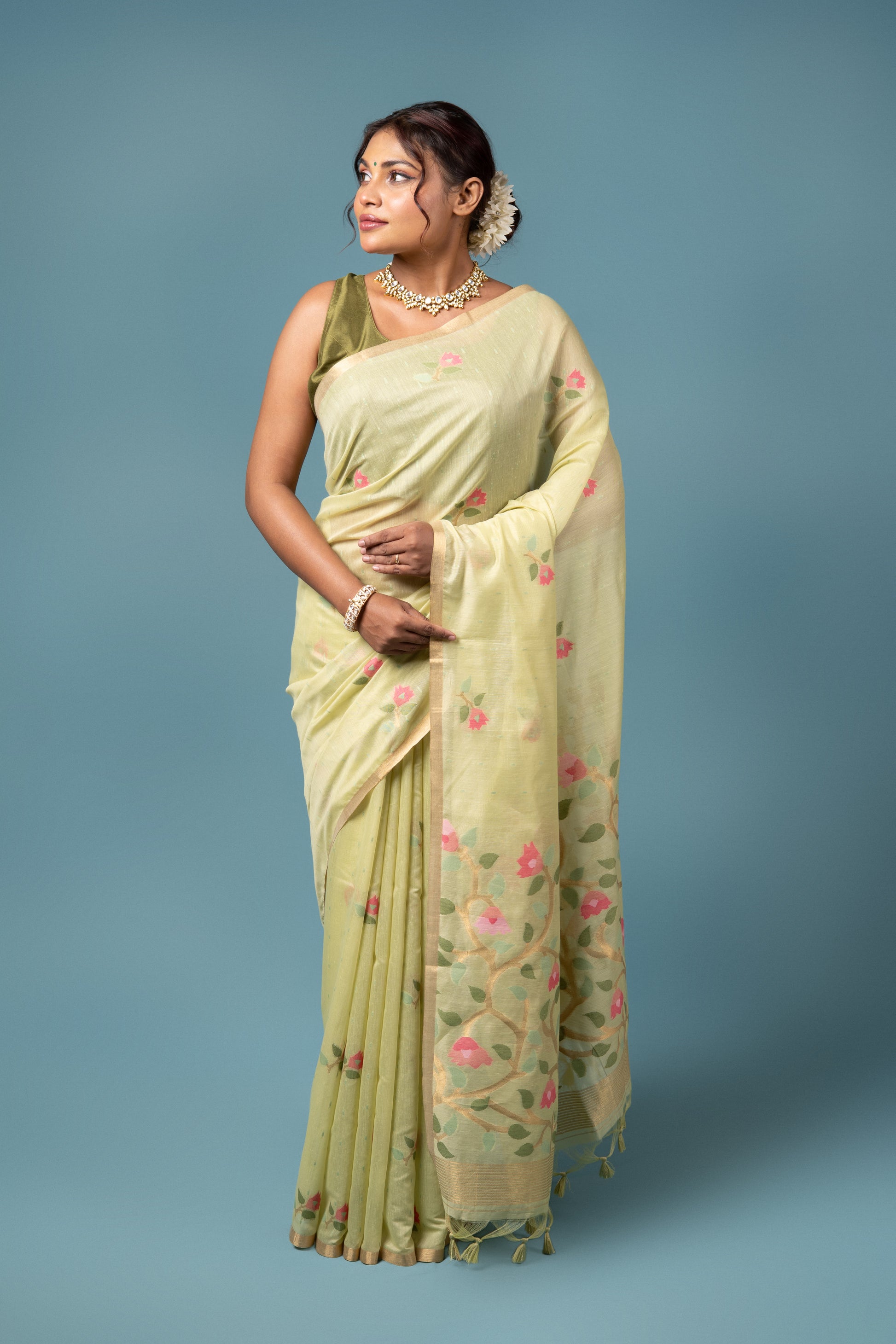 Elevate your wardrobe with our exclusive Pastel Green Cotton Saree. Featuring a beautiful Pastel Green hue, this piece effortlessly blends timeless tradition with modern elegance. Ideal for festive occasions or everyday sophistication. Shop now and make it yours.