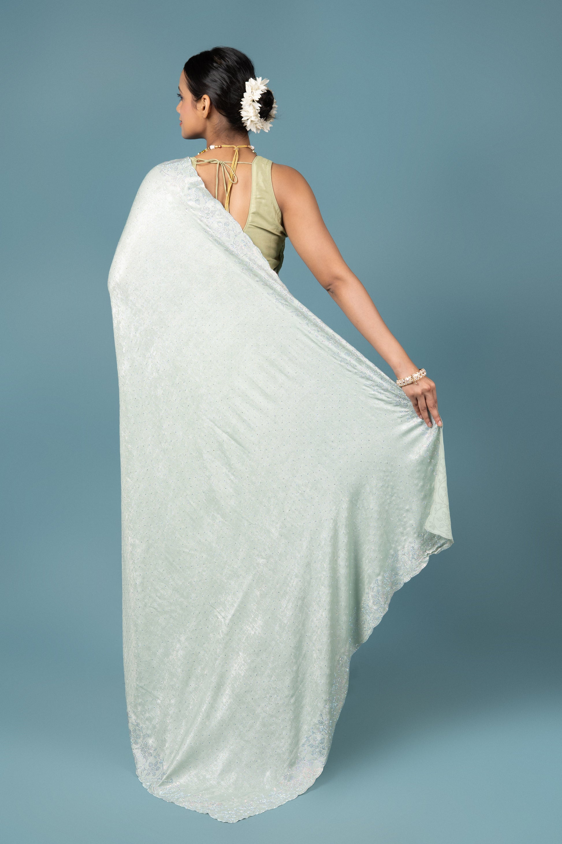 Elevate your wardrobe with our exclusive Pastel Green Georgette Saree with Stonework. Featuring a beautiful Pastel Green hue, this piece effortlessly blends timeless tradition with modern elegance. Ideal for festive occasions or everyday sophistication. Shop now and make it yours.