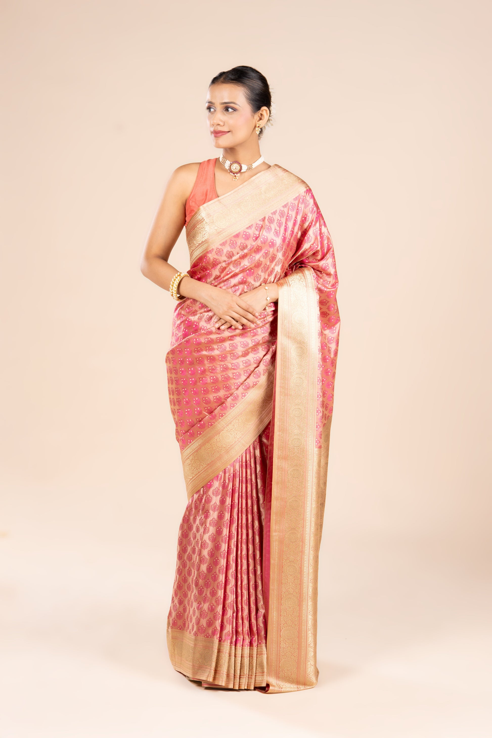 Elevate your ethnic wardrobe with this stunning Pastel Pink Soft Silk Banarasi Saree, designed to blend luxurious texture with traditional elegance. Crafted from premium Art Silk - Soft Silk, this saree brings a rich and elegant drape, making it ideal for festive, party. The signature Banarasi / Hastakala Exclusive style adds a regal charm, while its exquisite detailing enhances grace and sophistication. Pair it with traditional jewellery to complete your festive or wedding-ready look.