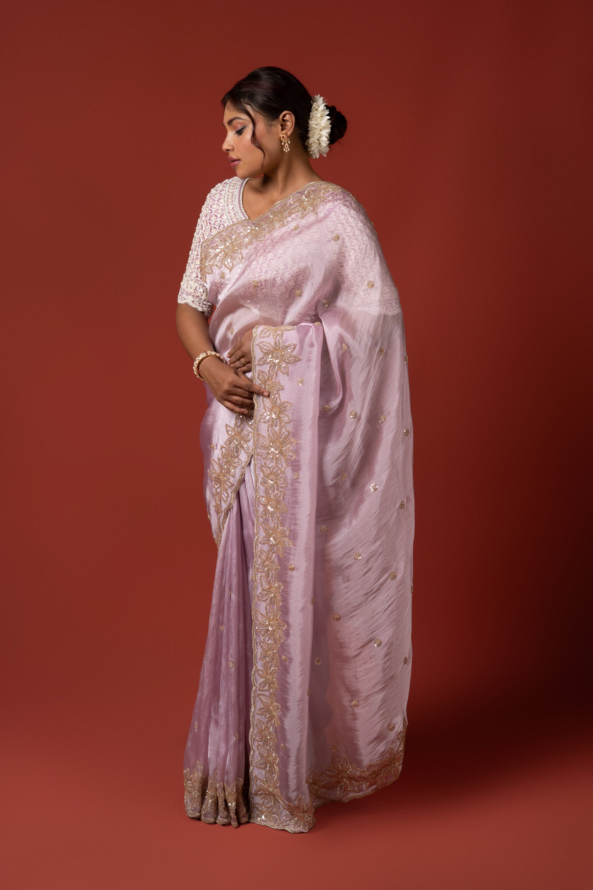 Elevate your wardrobe with our exclusive Pastel Purple Organza Saree with Stone Work. Featuring a beautiful Pastel Purple hue, this piece effortlessly blends timeless tradition with modern elegance. Ideal for festive occasions or everyday sophistication. Shop now and make it yours.