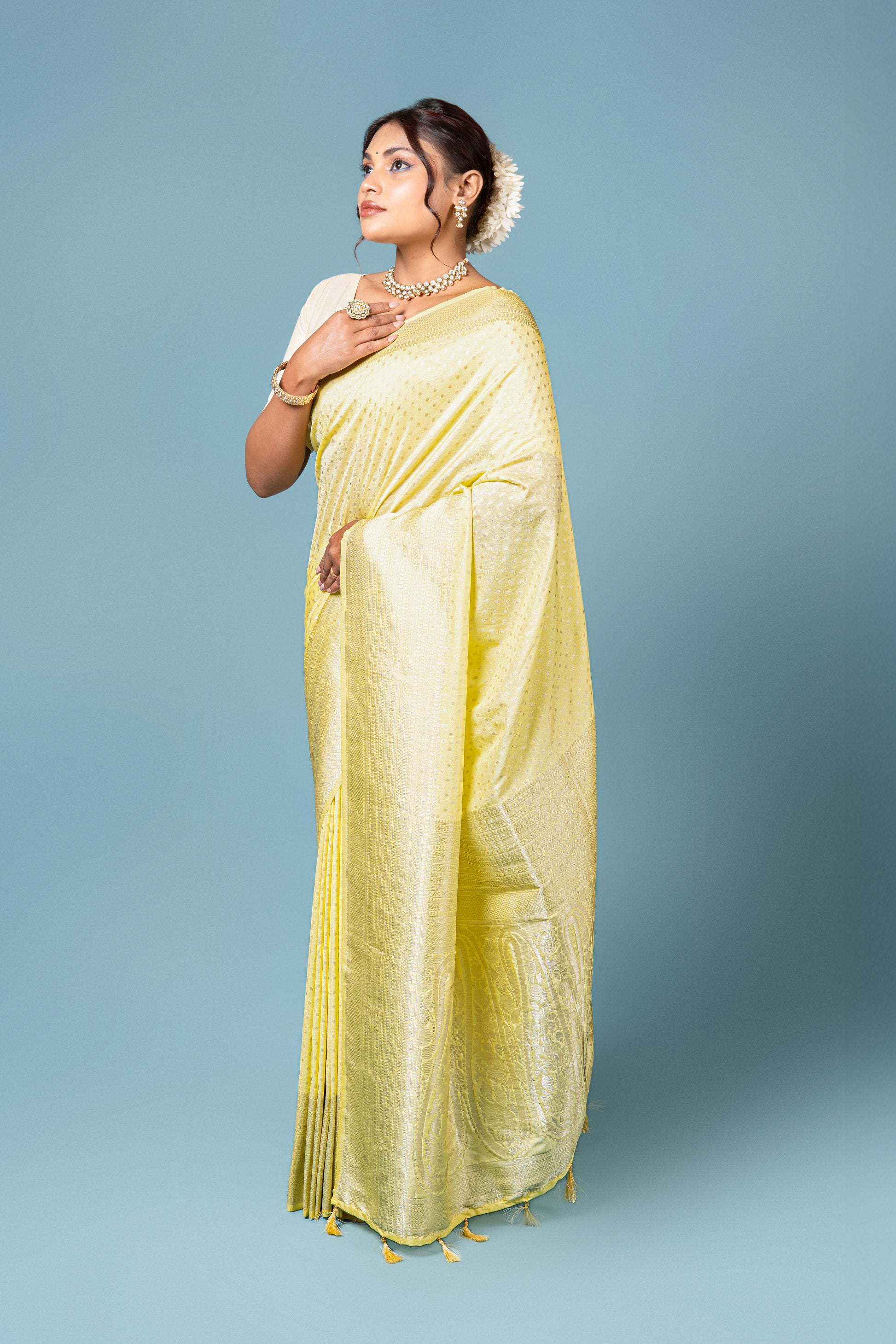 Elevate your wardrobe with our exclusive Pastel Yellow Georgette Saree. Featuring a beautiful Pastel Yellow hue, this piece effortlessly blends timeless tradition with modern elegance. Ideal for festive occasions or everyday sophistication. Shop now and make it yours.