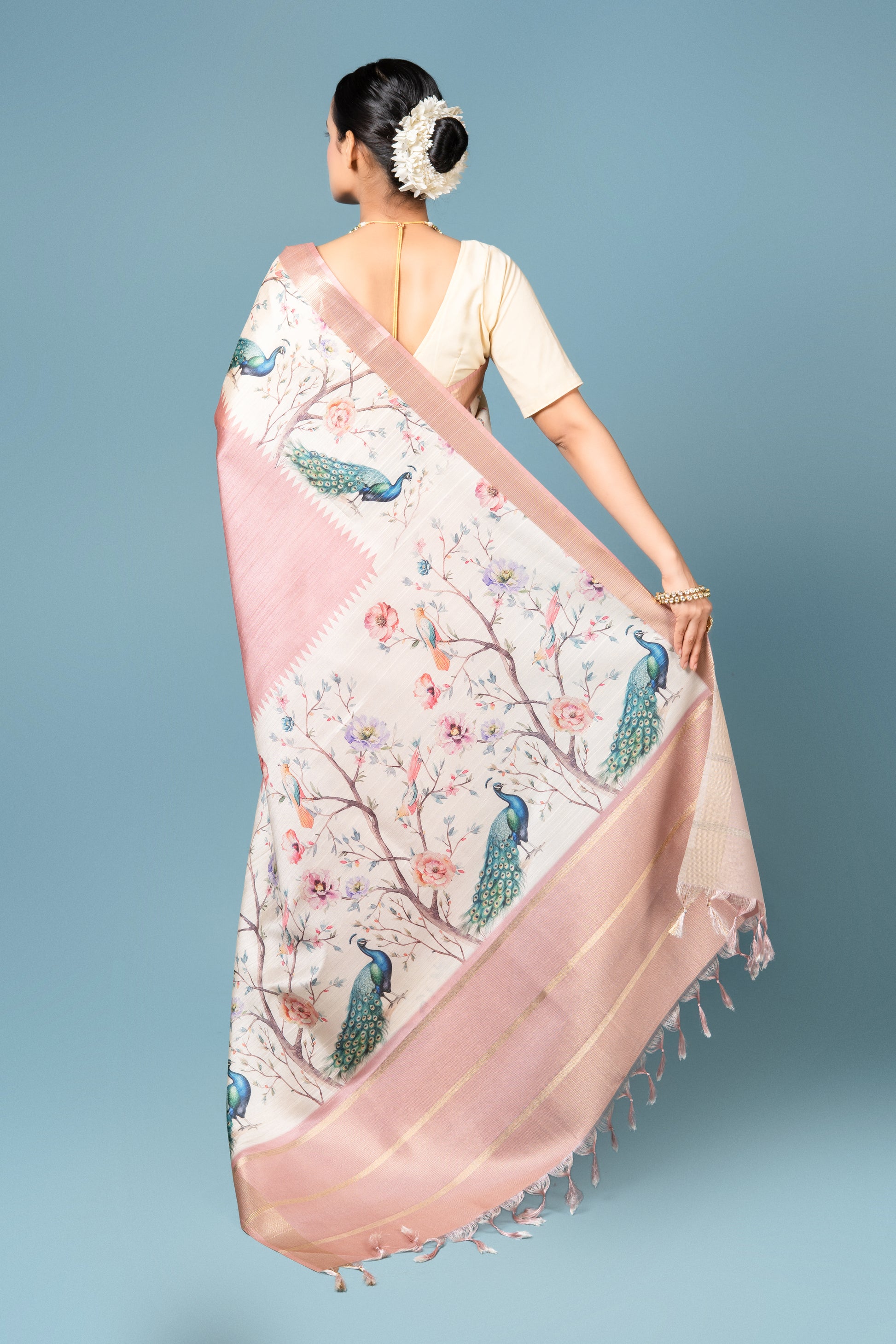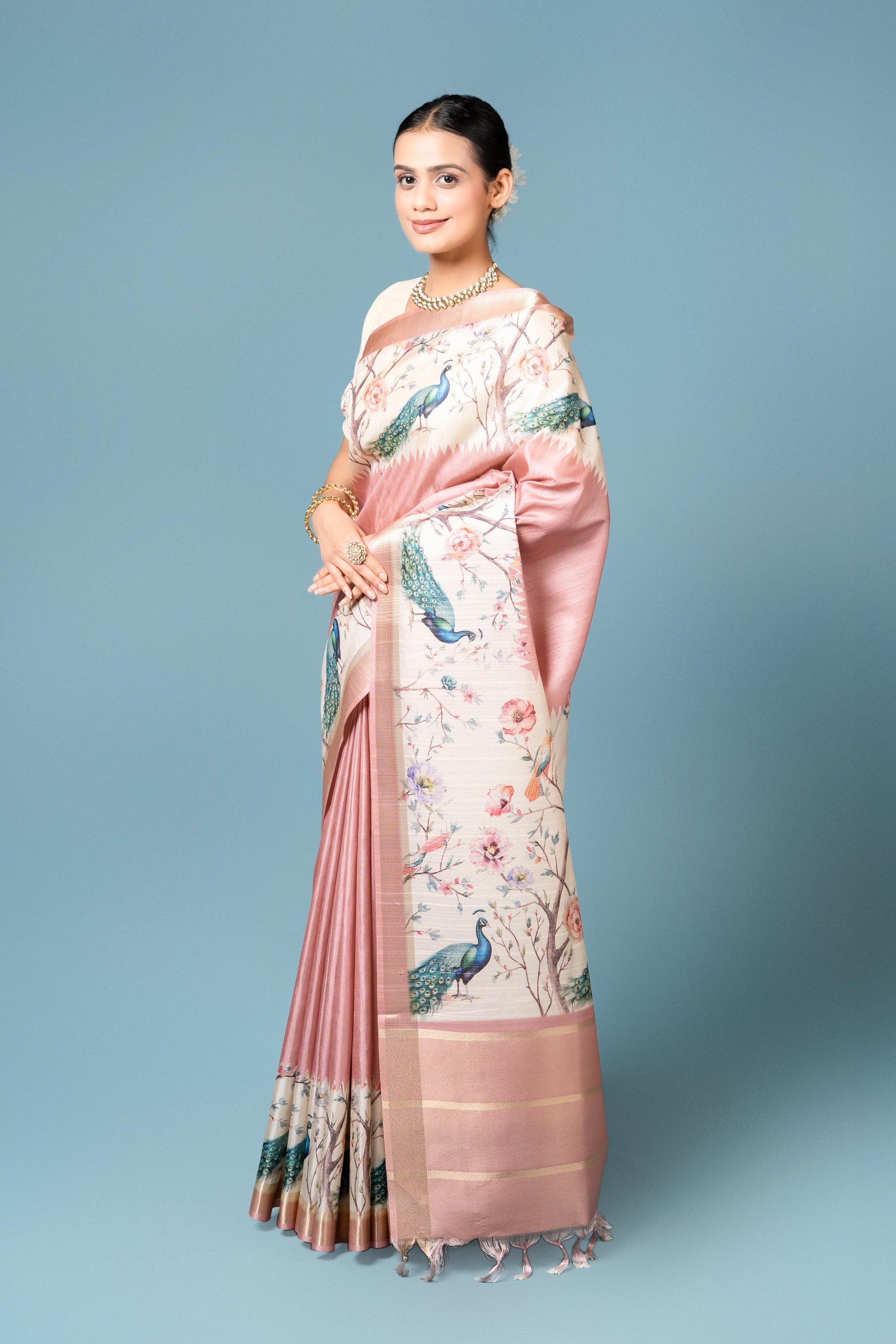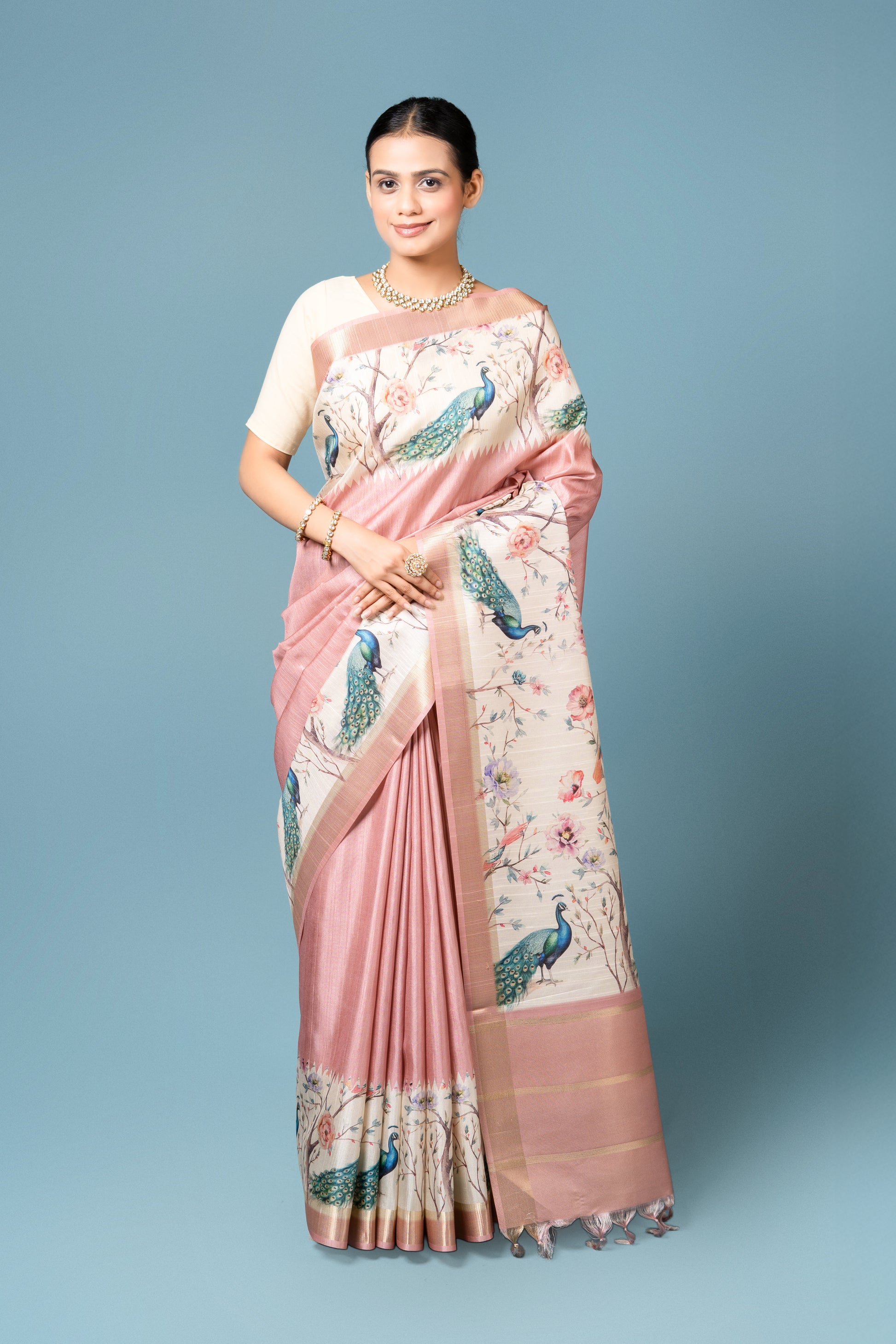Peach Tussar Silk Saree