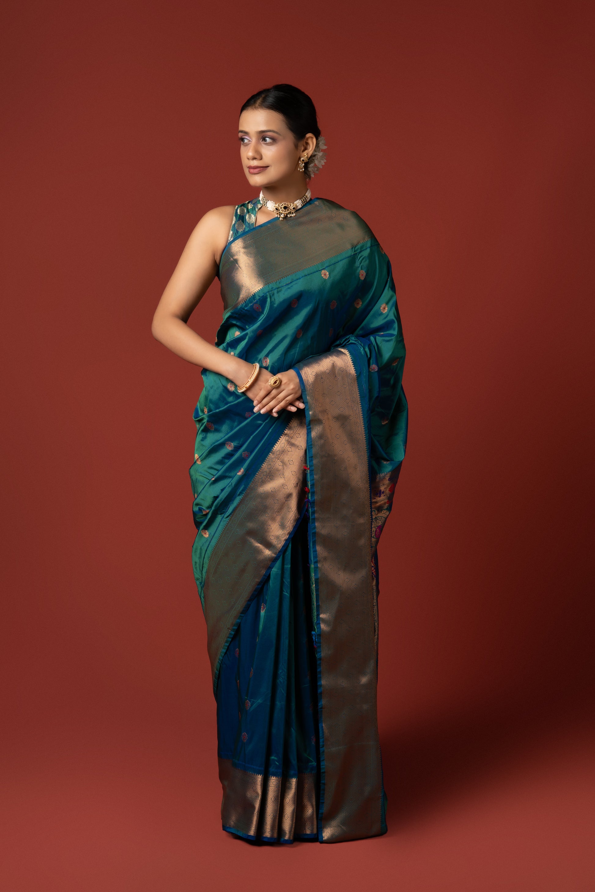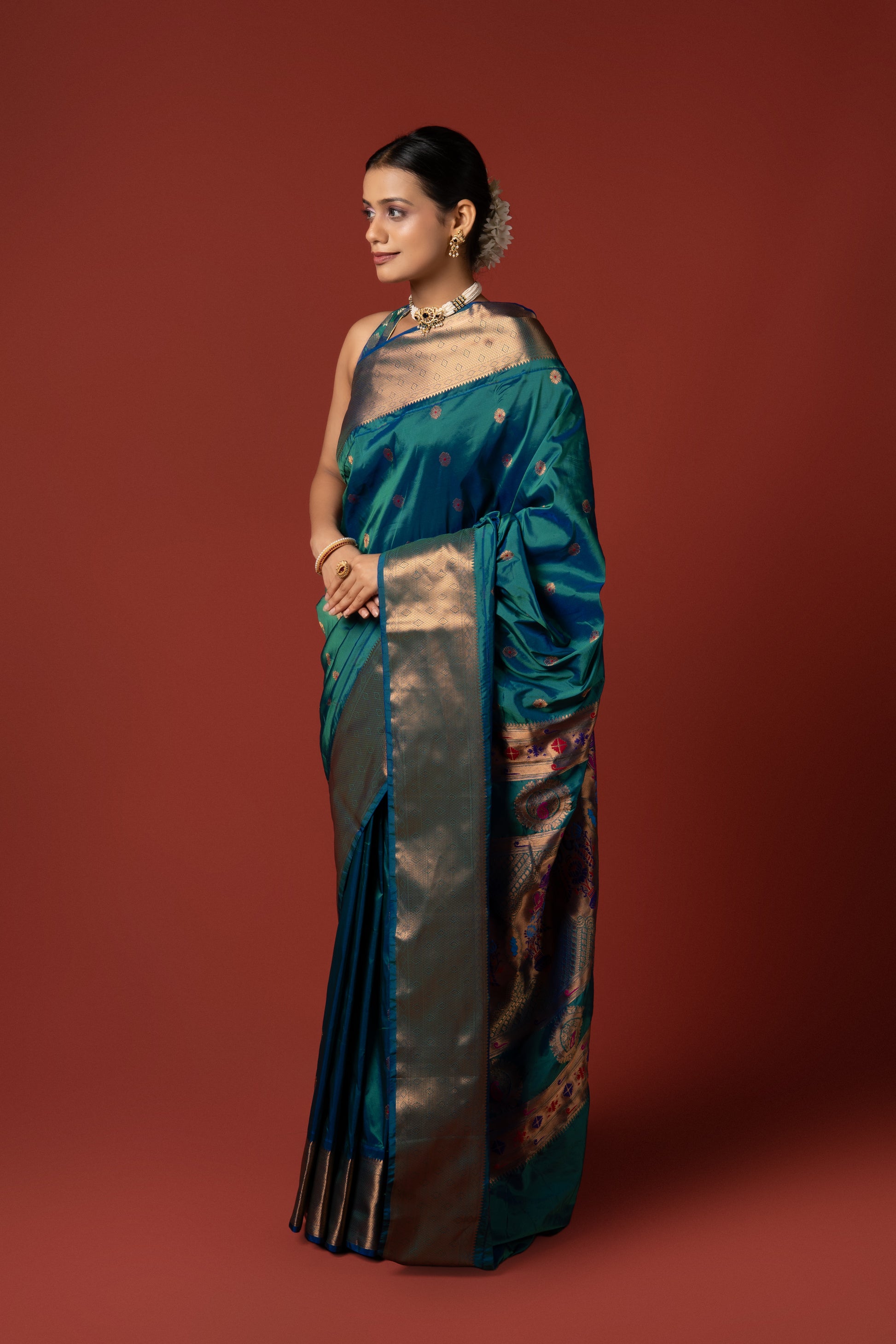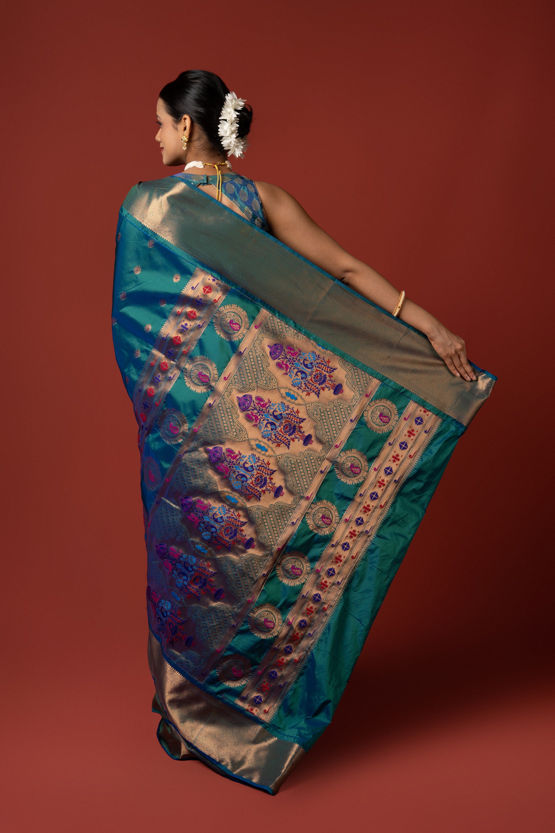 Peacock Blue Apurva Silk Paithani Saree