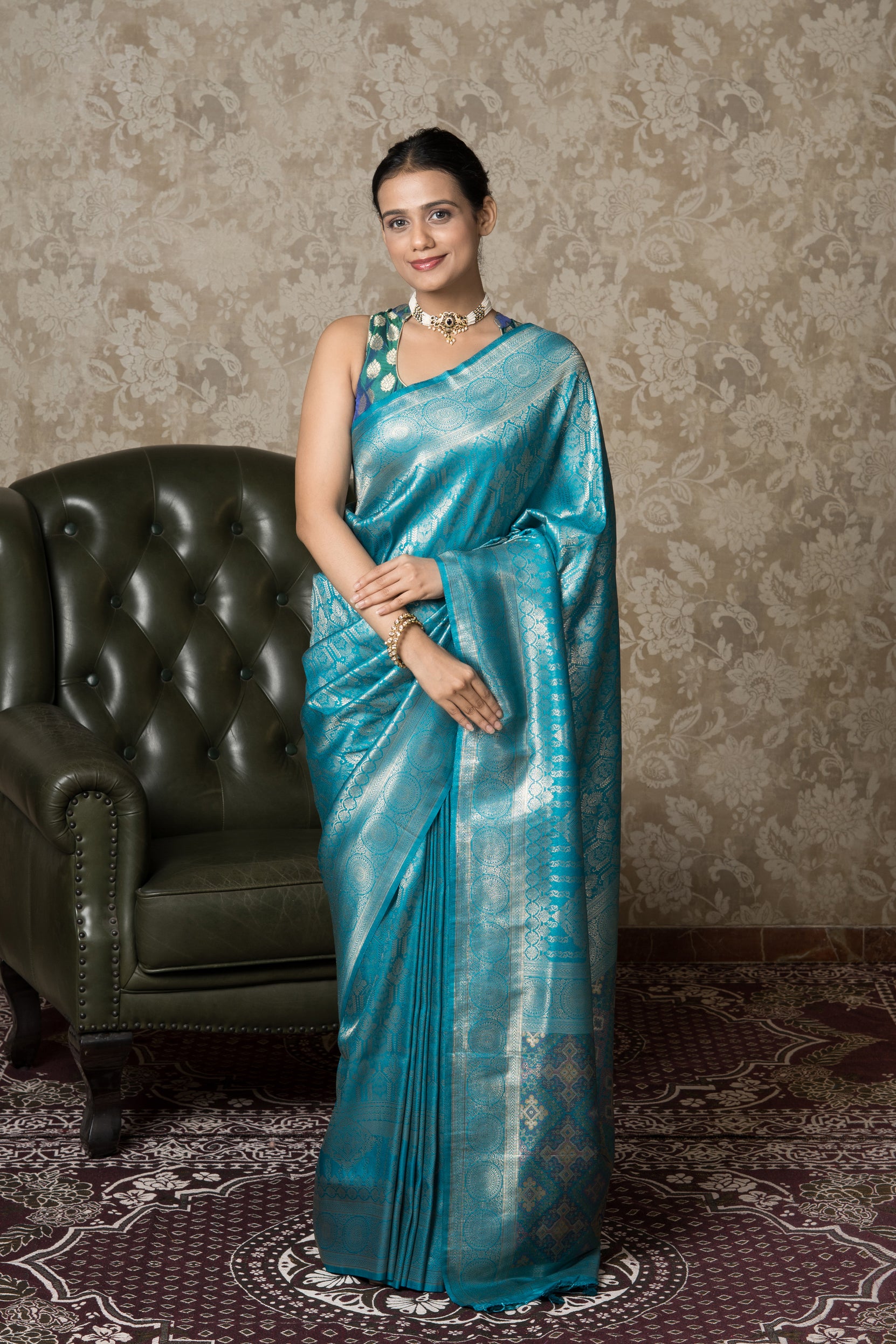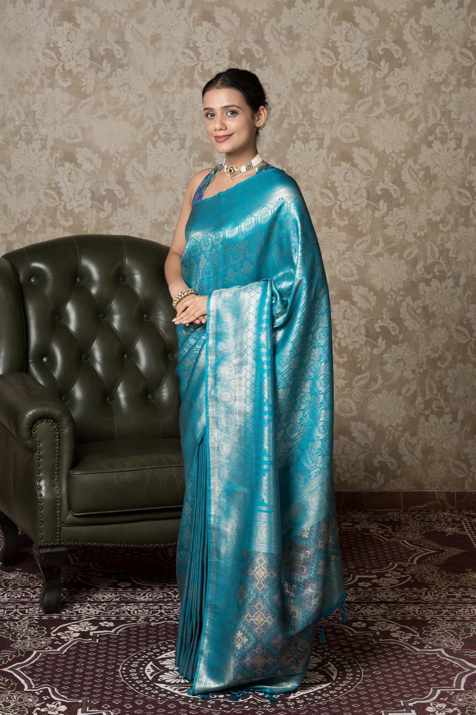 Peacock Blue Soft Silk Saree