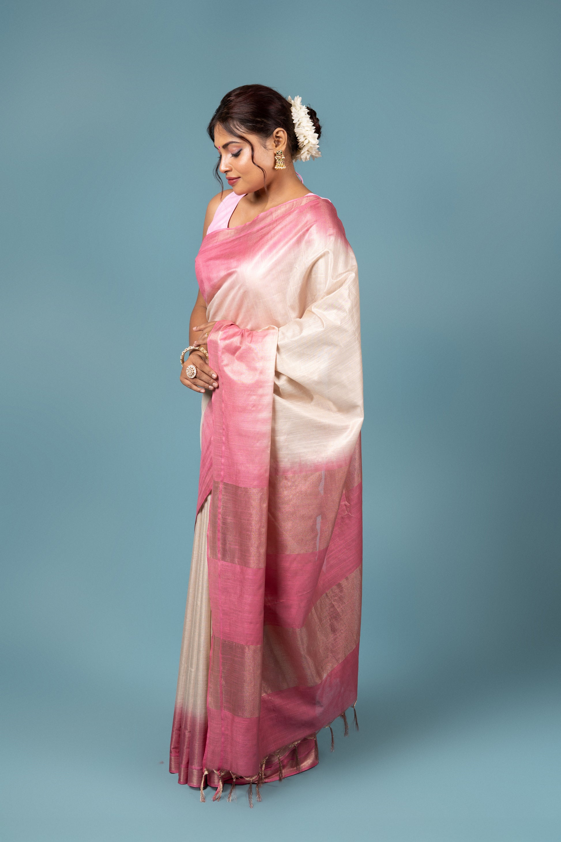Radiant and graceful, this Pink Tissue Silk Saree from Hastakala Exclusive is crafted to make every occasion special. Woven from Art Silk – Tissue Silk, the saree carries a natural shimmer that beautifully enhances its festive look. The vibrant pink base is adorned with delicate silver zari weaving, creating an elegant balance of tradition and charm.