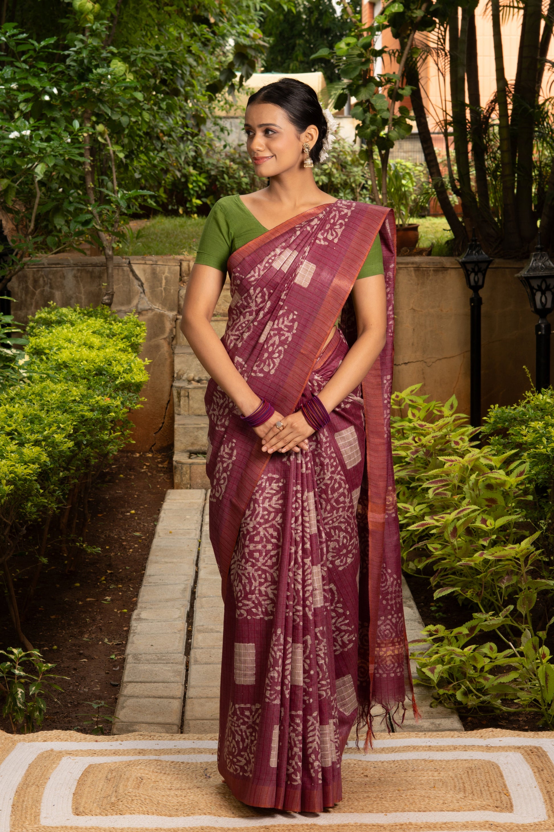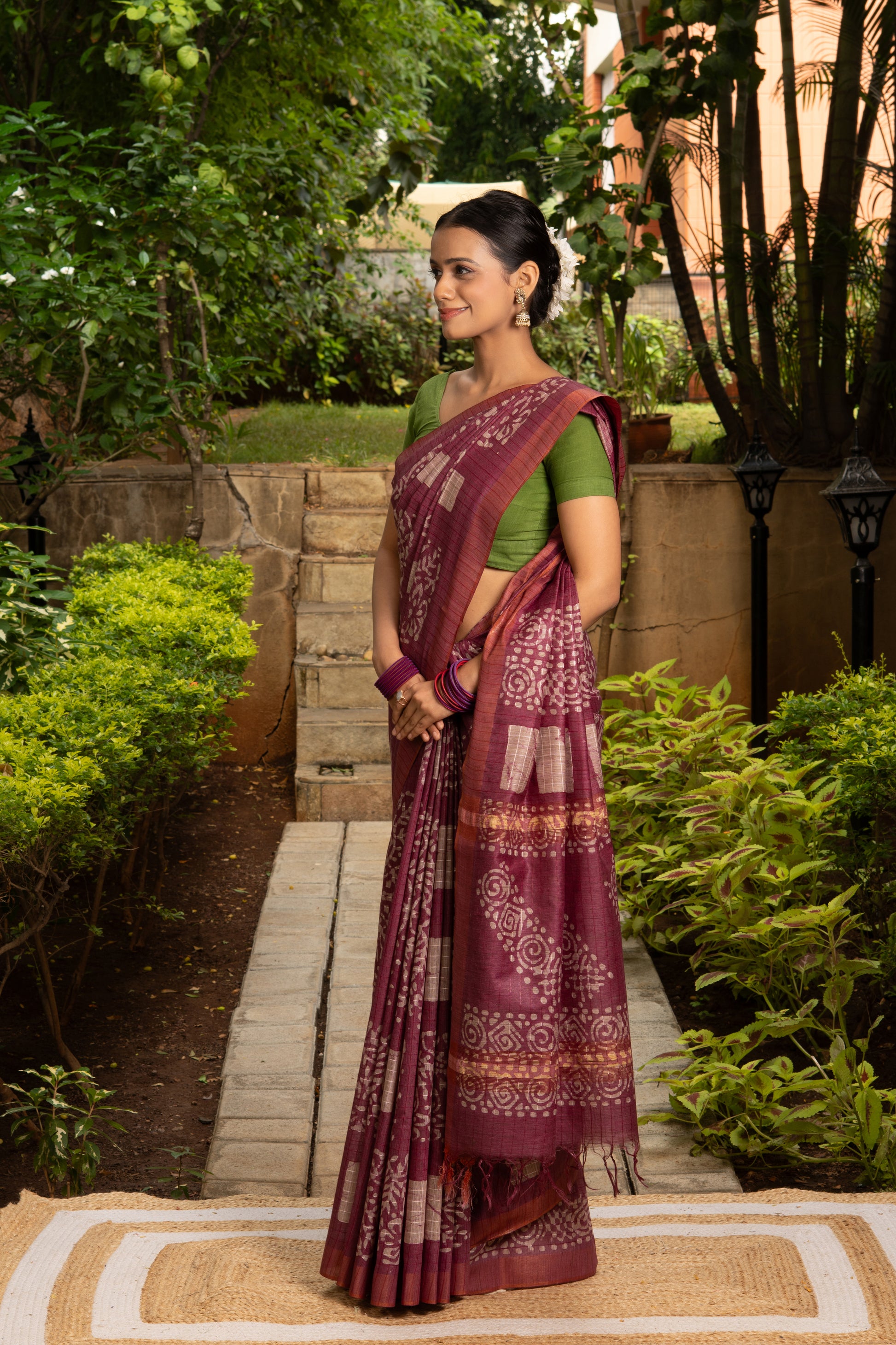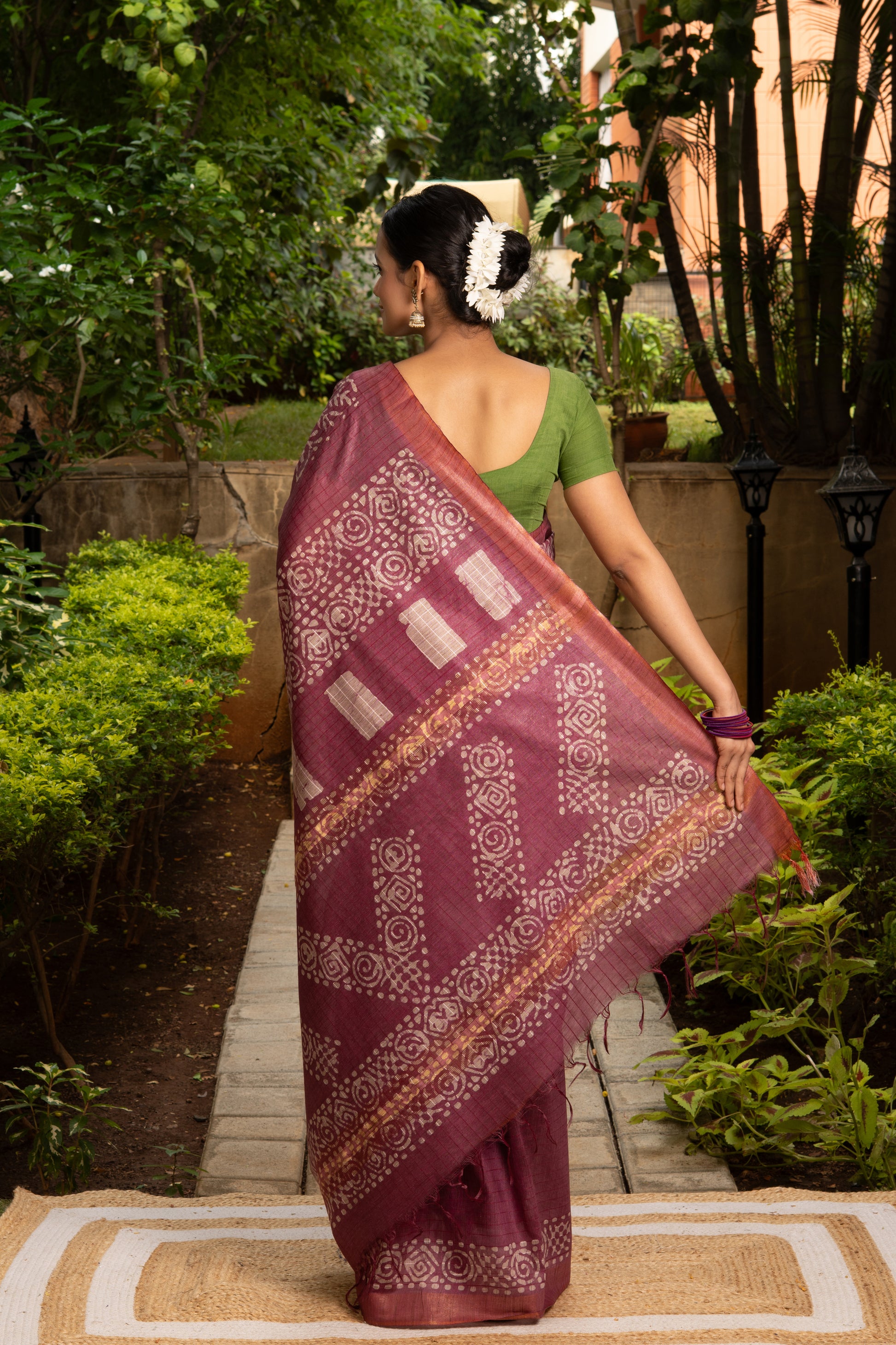 Elevate your wardrobe with our exclusive Pink Tussar Silk Saree with Batik Print. Featuring a beautiful Pink hue, this piece effortlessly blends timeless tradition with modern elegance. Ideal for festive occasions or everyday sophistication. Shop now and make it yours.