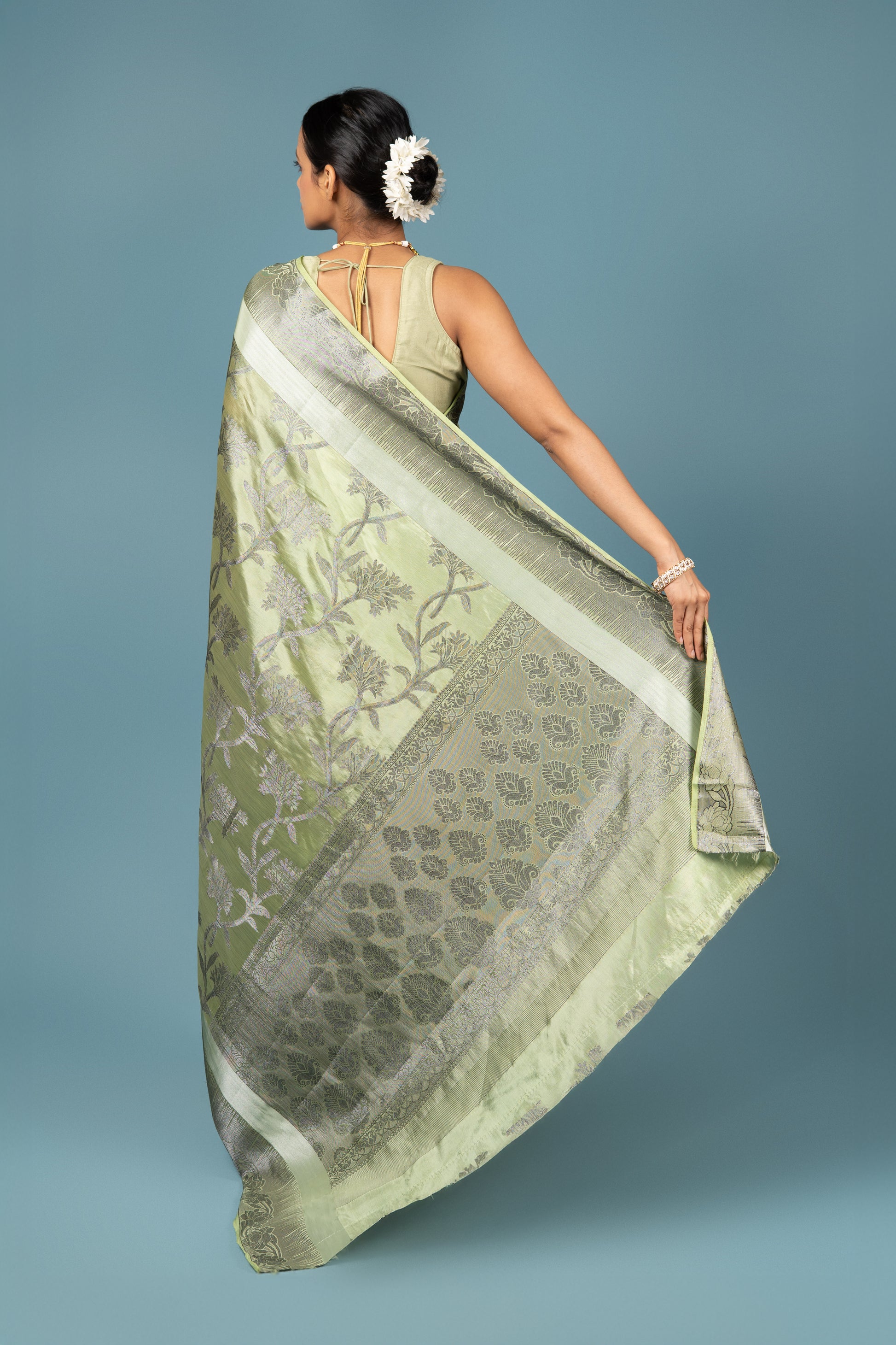Pista Green Tussar Silk SareeCHIHKEX0001