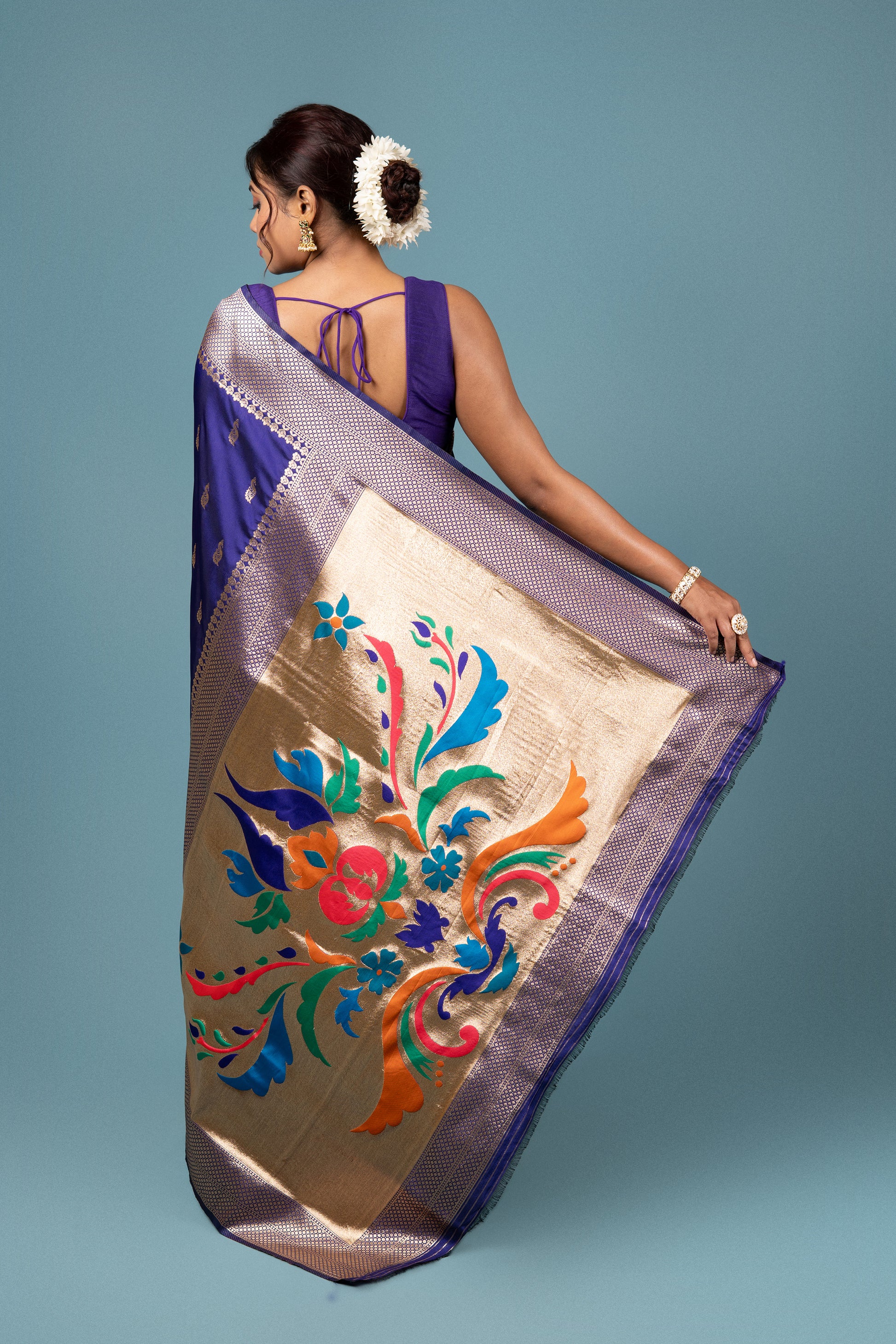 Elevate your wardrobe with our exclusive Purple Katan Silk Paithani Saree. Featuring a beautiful Purple hue, this piece effortlessly blends timeless tradition with modern elegance. Ideal for festive occasions or everyday sophistication. Shop now and make it yours.