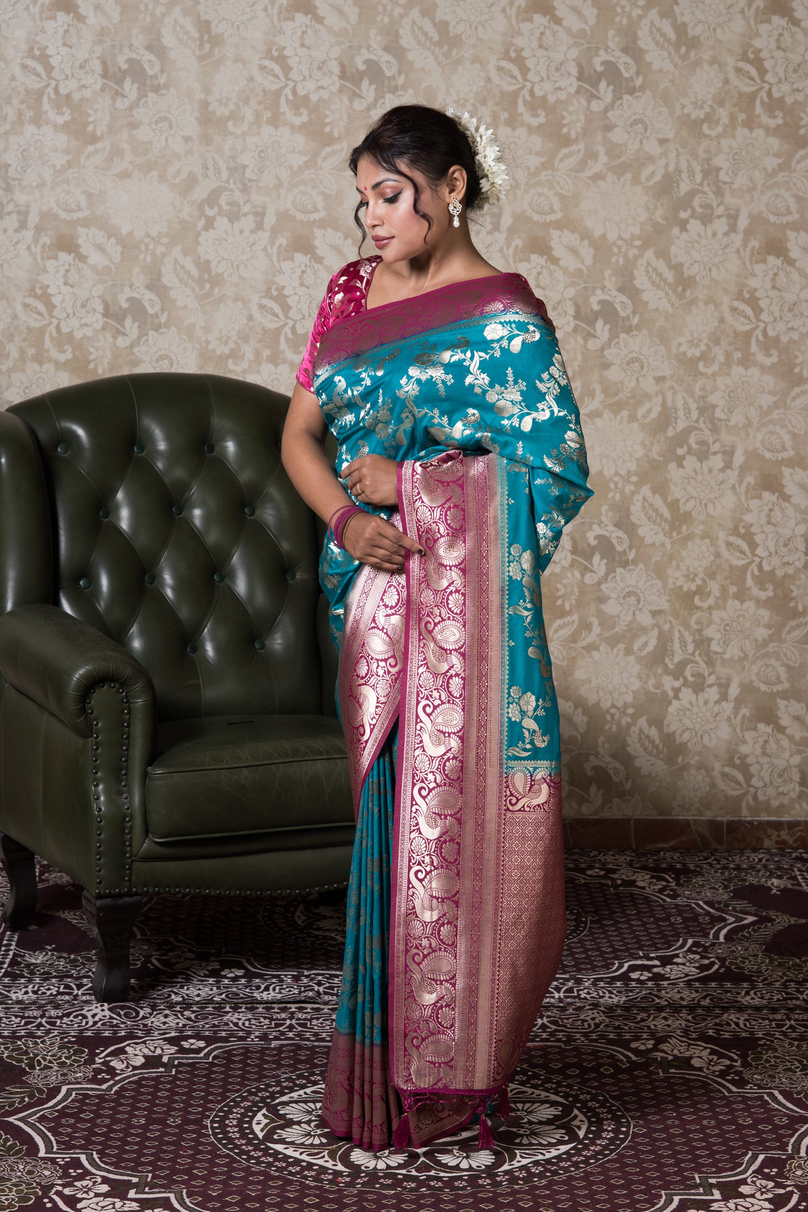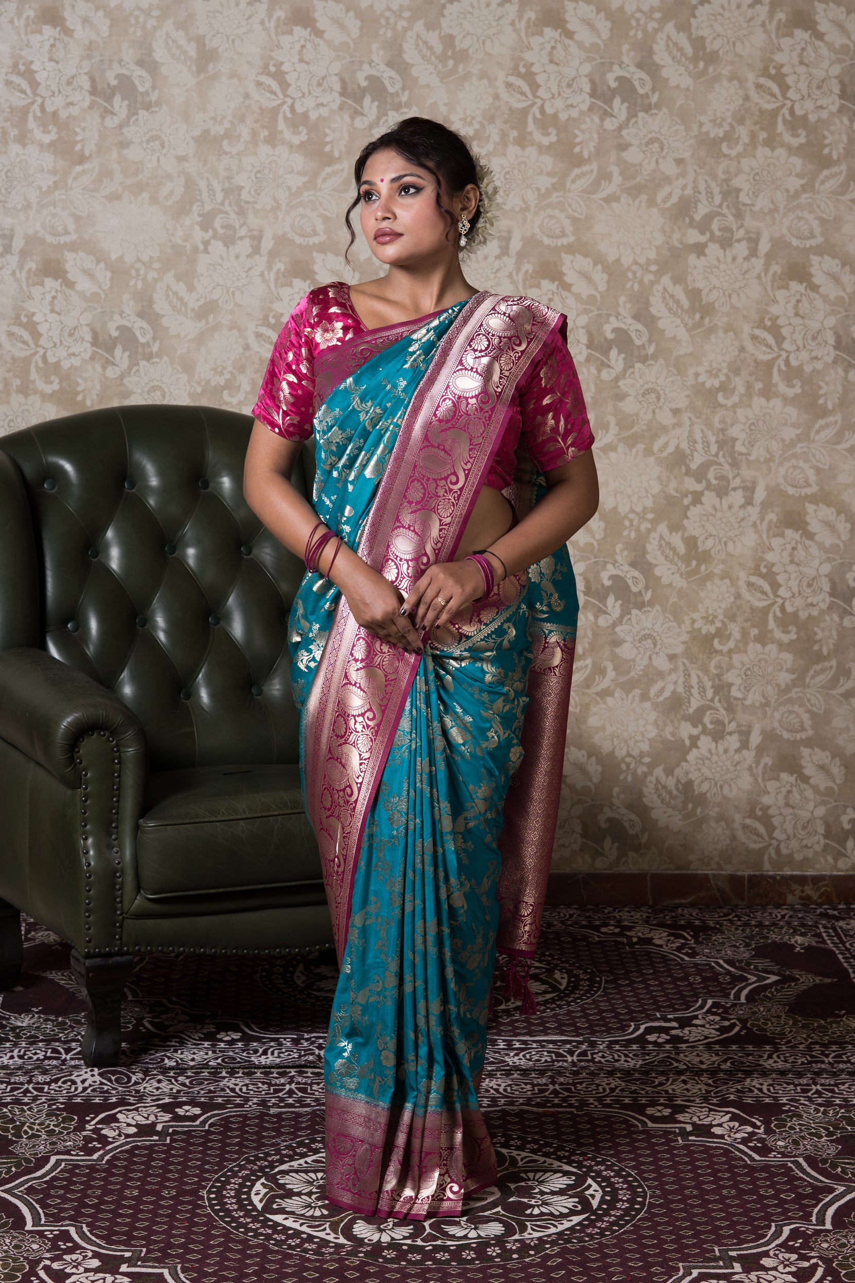 Rama Green Georgette Banarasi Saree with Swarovski Work