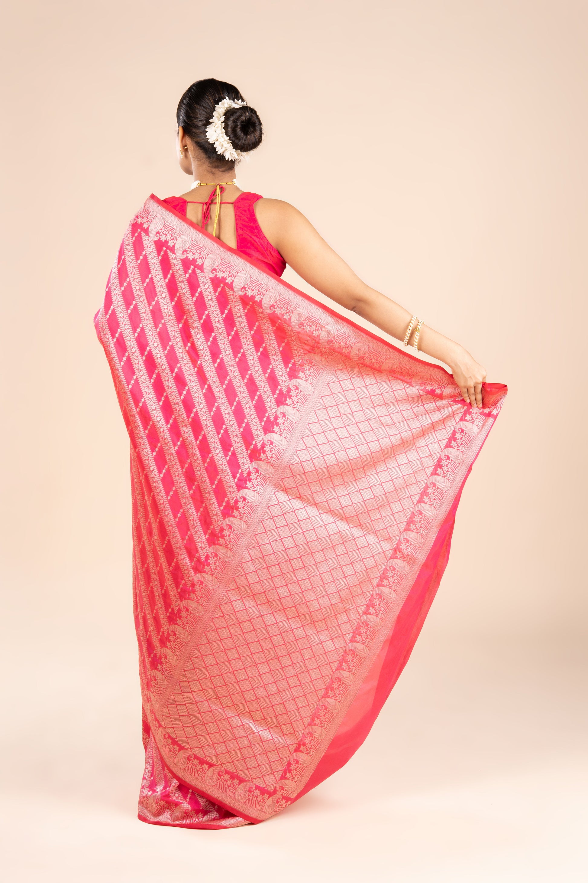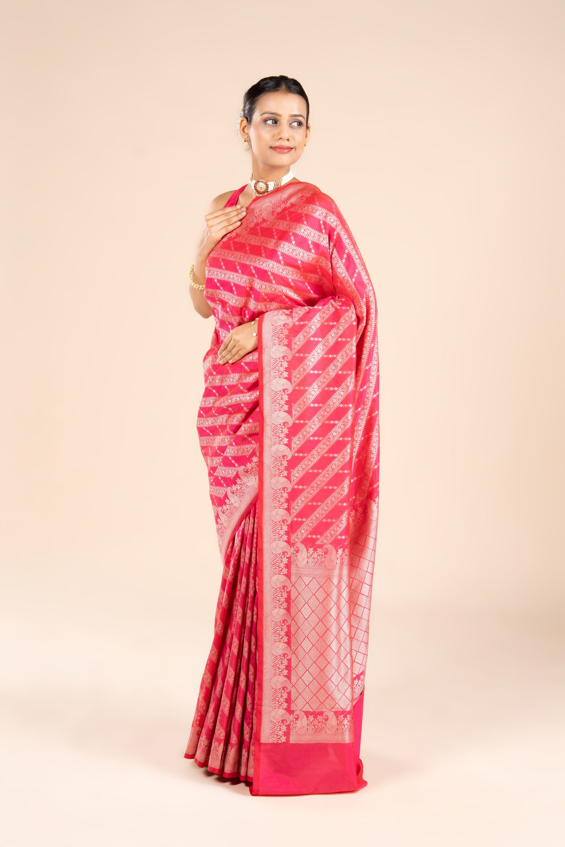Rani Pink Katan Silk Banarasi Saree with Leheriya Pattern