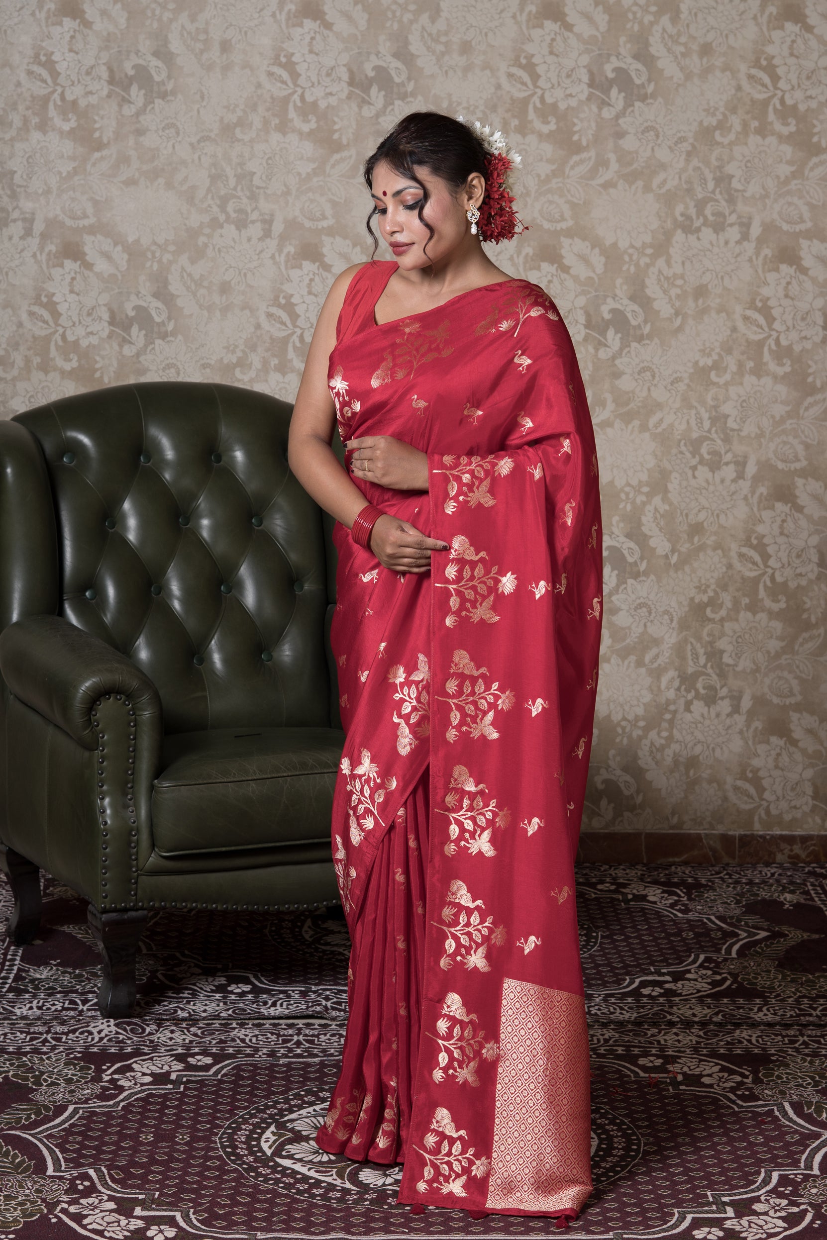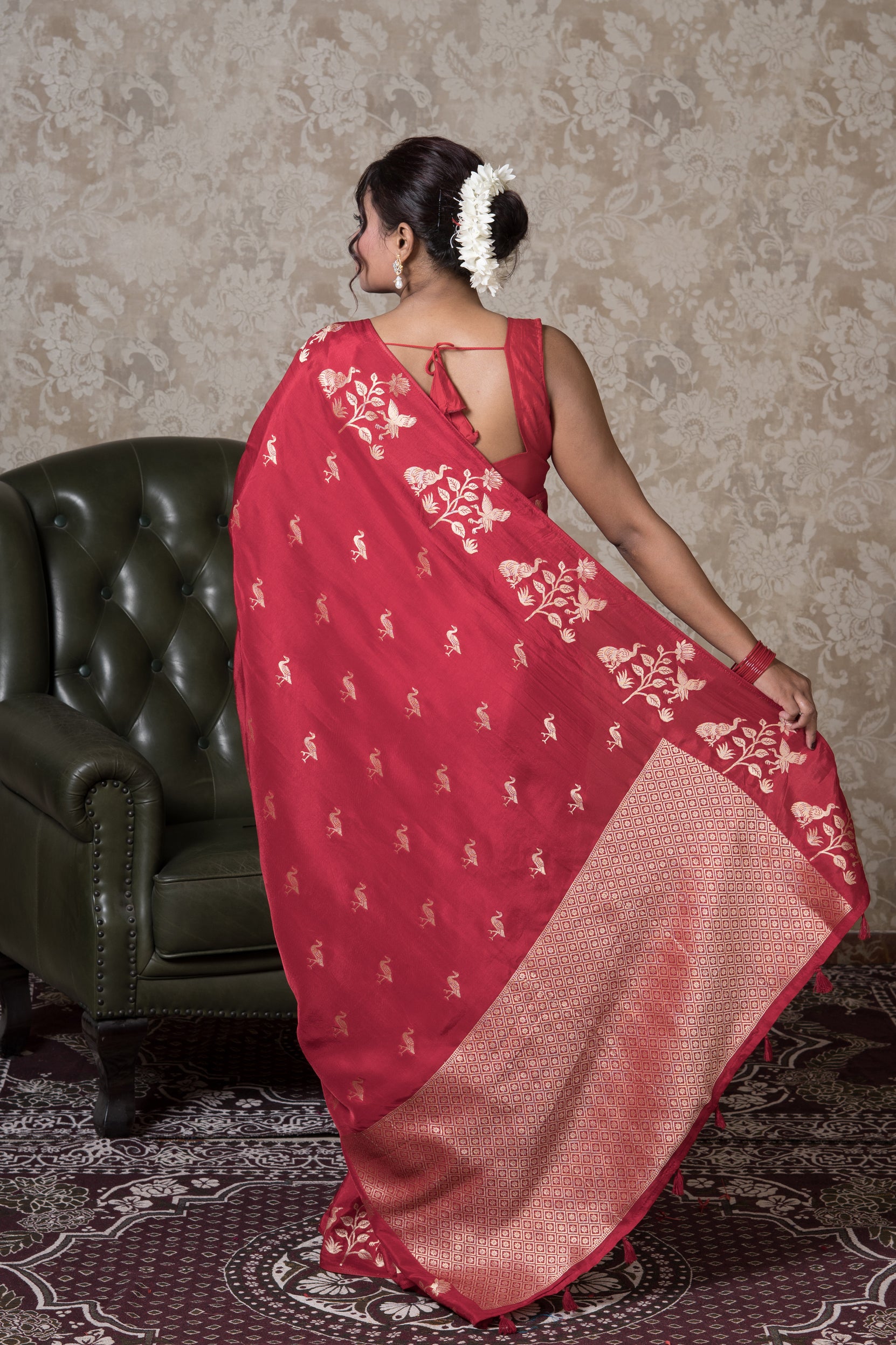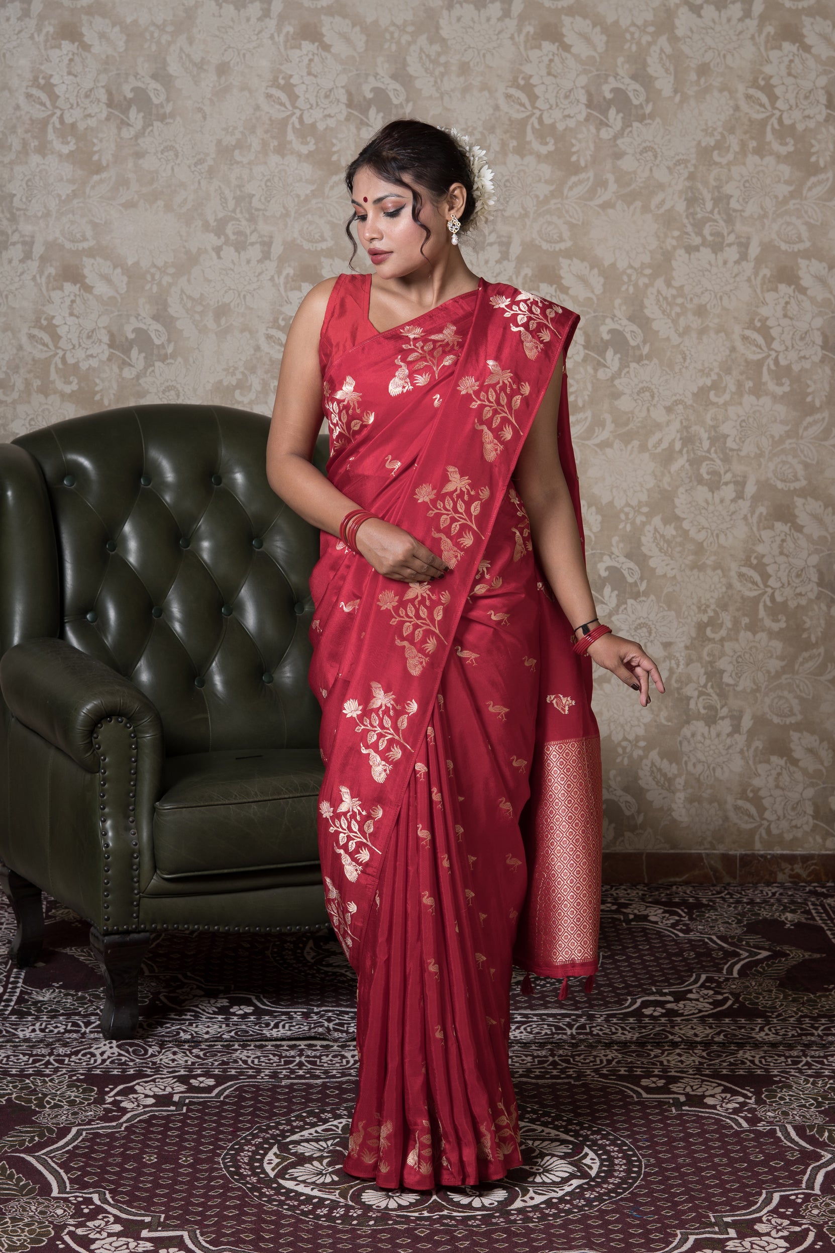 Elevate your wardrobe with our exclusive Red Dola Silk Saree. Featuring a beautiful Red hue, this piece effortlessly blends timeless tradition with modern elegance. Ideal for festive occasions or everyday sophistication. Shop now and make it yours.