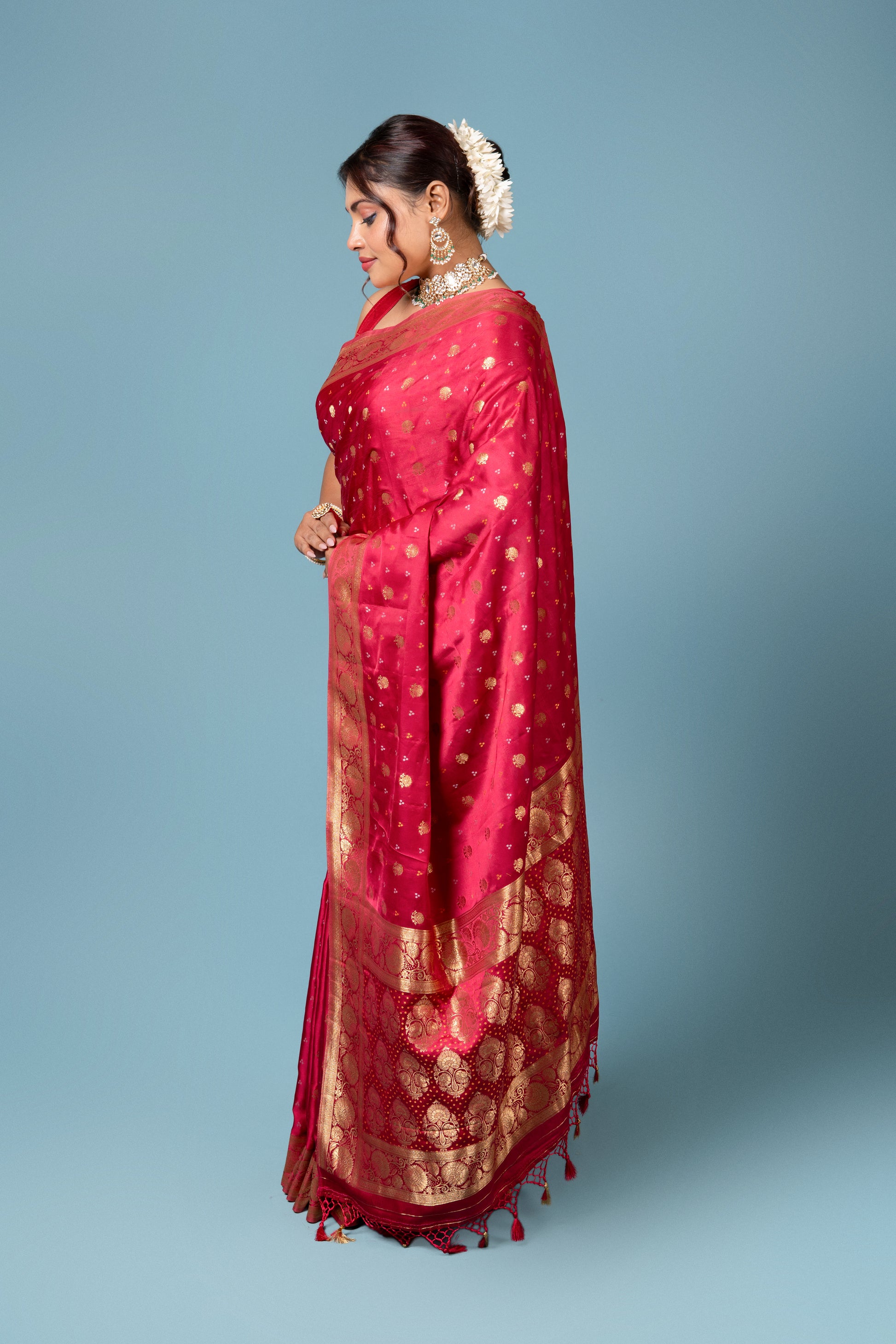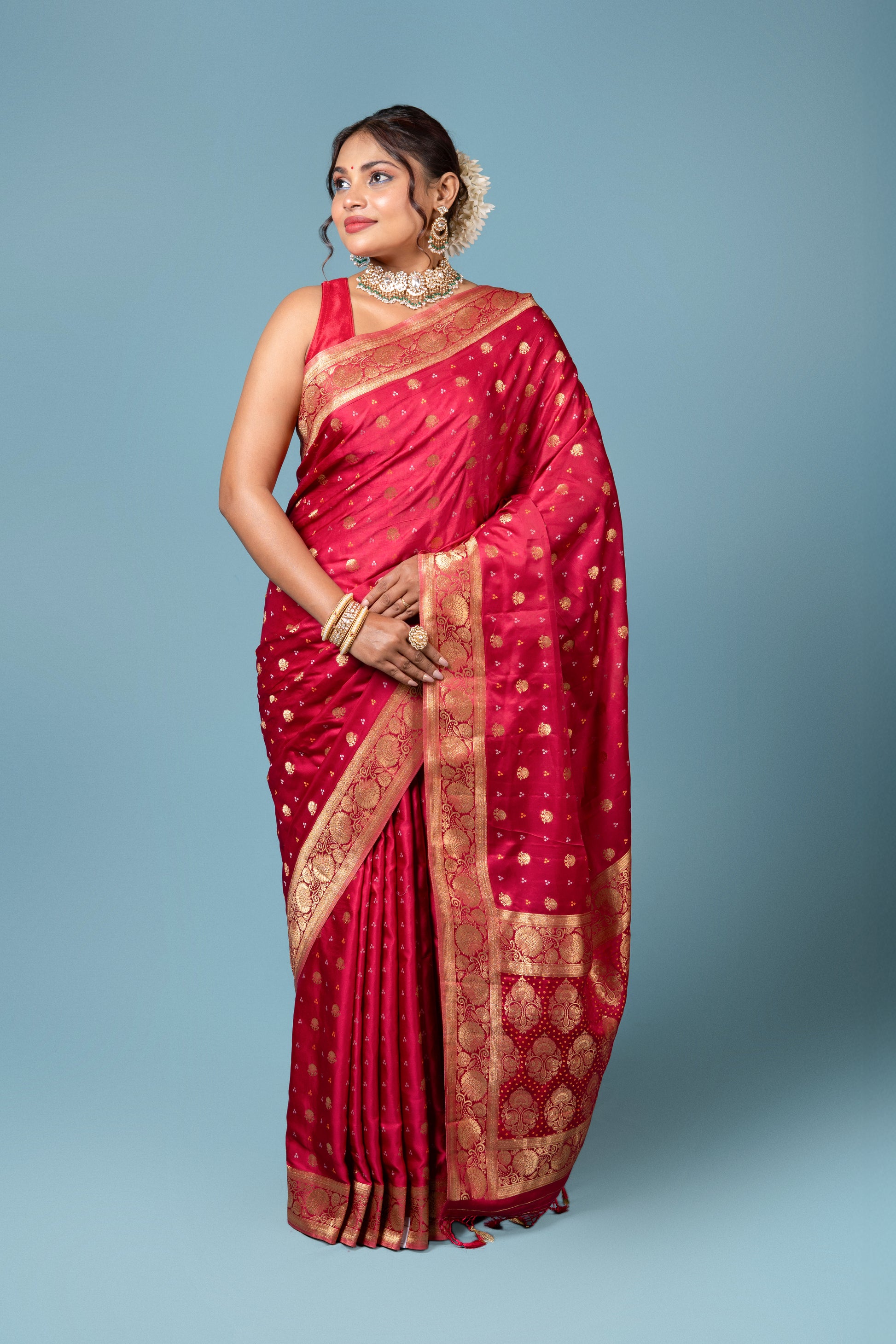Bold, elegant, and timeless, this Red Katan Silk Saree from Hastakala Exclusive is designed to make a striking statement at every occasion. Crafted in luxurious Art Silk – Satin Silk, the saree exudes a rich sheen and graceful fall, while the vibrant red shade symbolizes celebration and tradition.