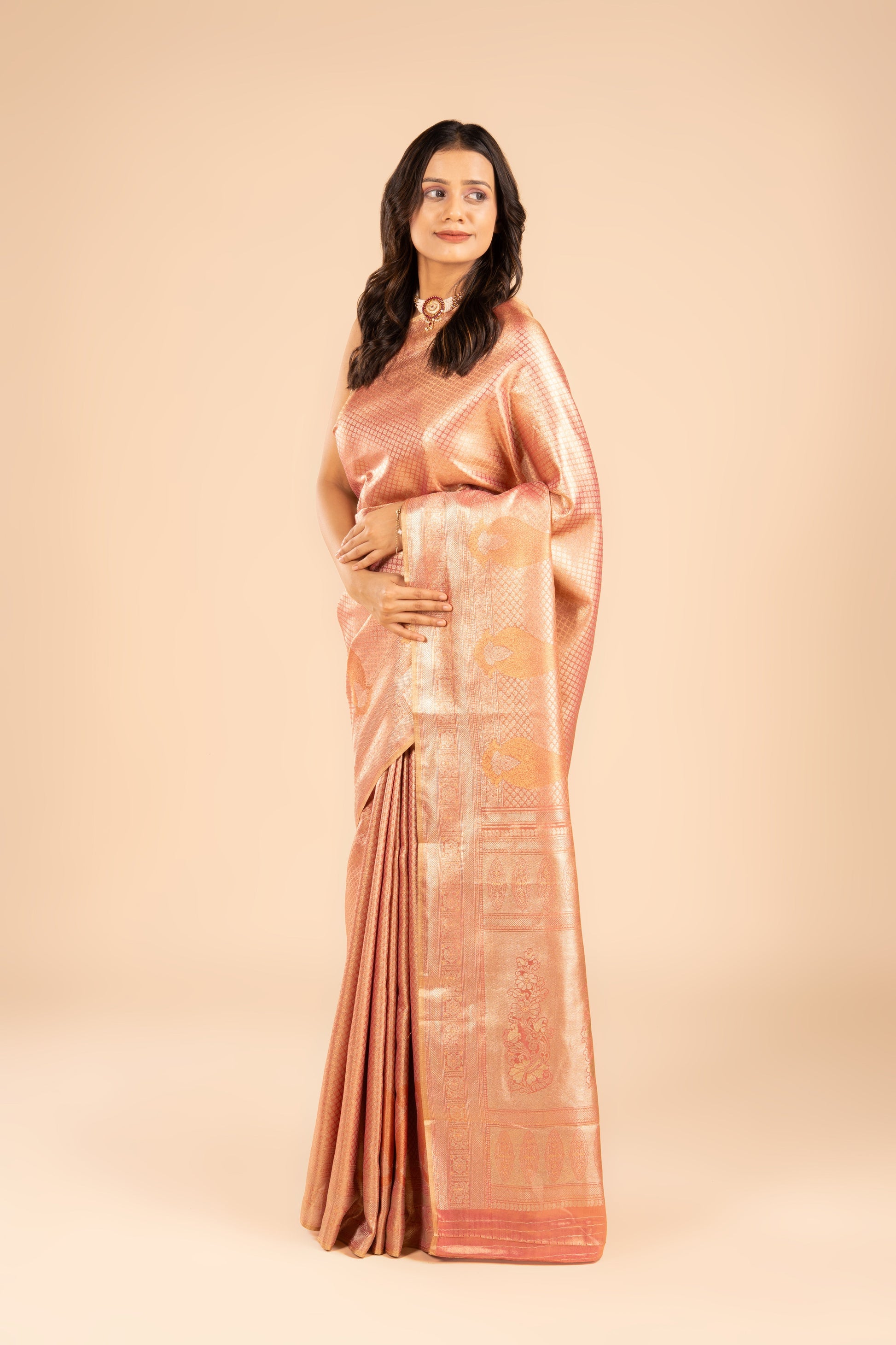 Rose Gold Tissue Silk Brocade Saree
