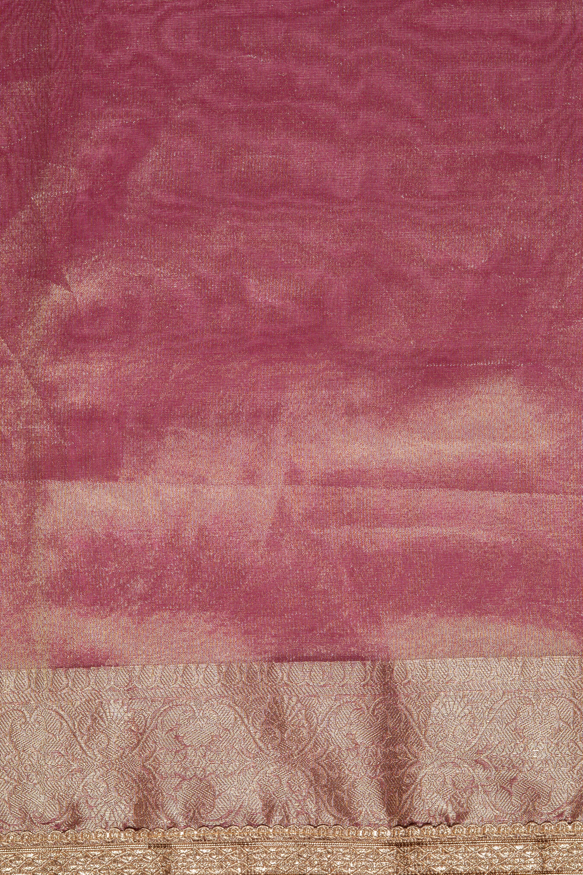 Perfectly crafted for special occasions, this Rose Gold Tissue Silk Saree is a true delight. Every thread speaks of tradition while ensuring a modern appeal. Ideal for marking life as most memorable moments in style. Keep it chic with delicate jewellery for subtle sophistication.