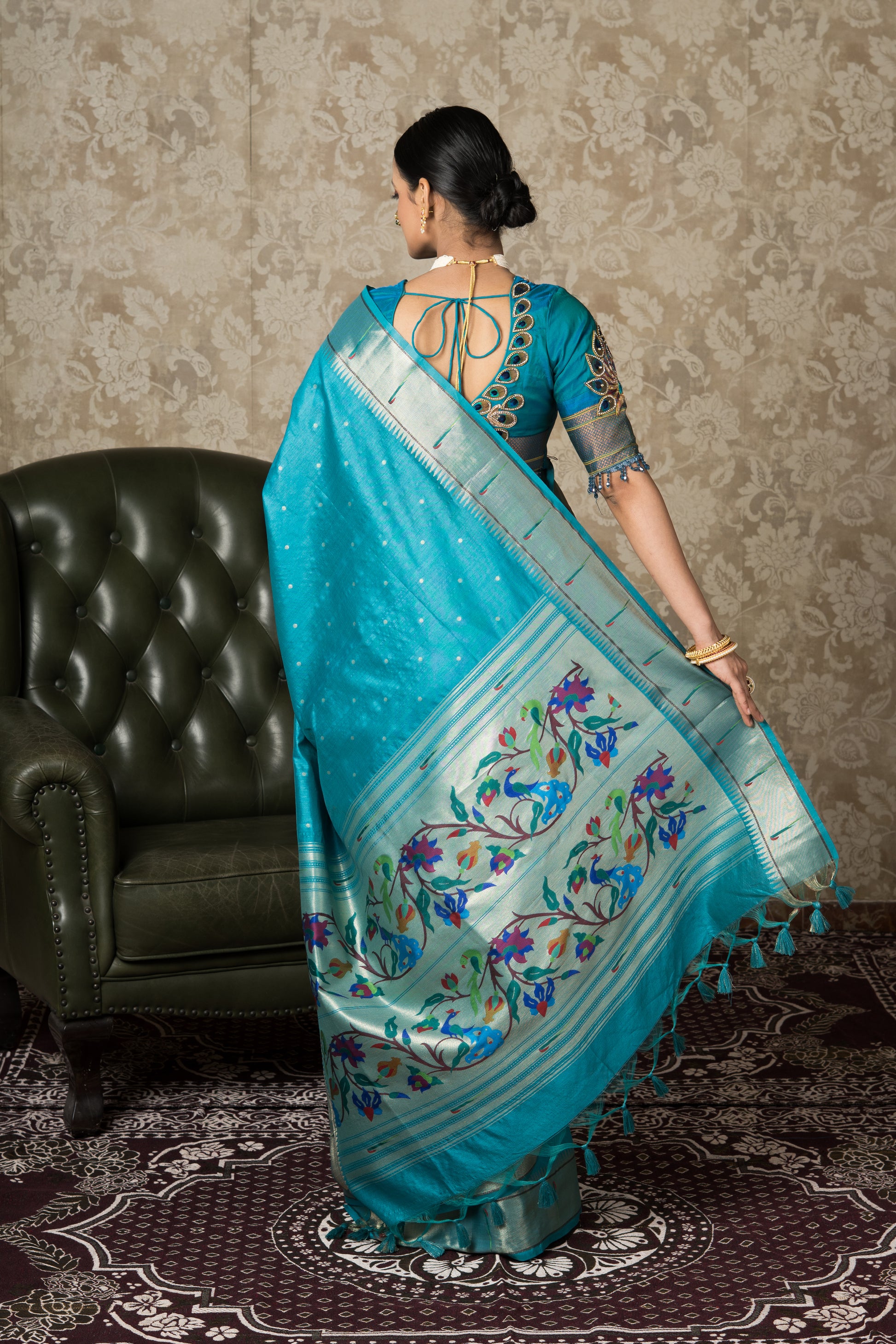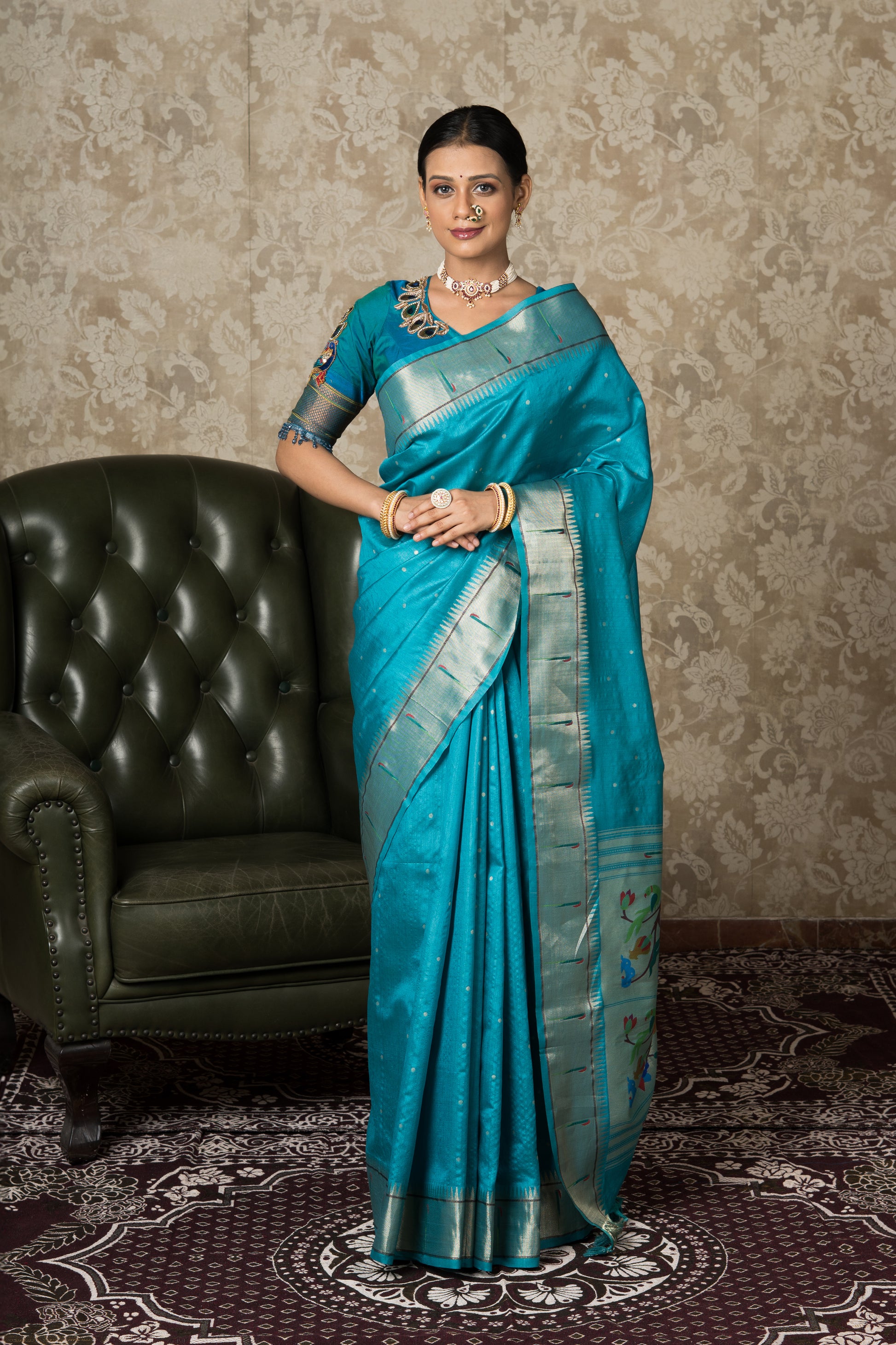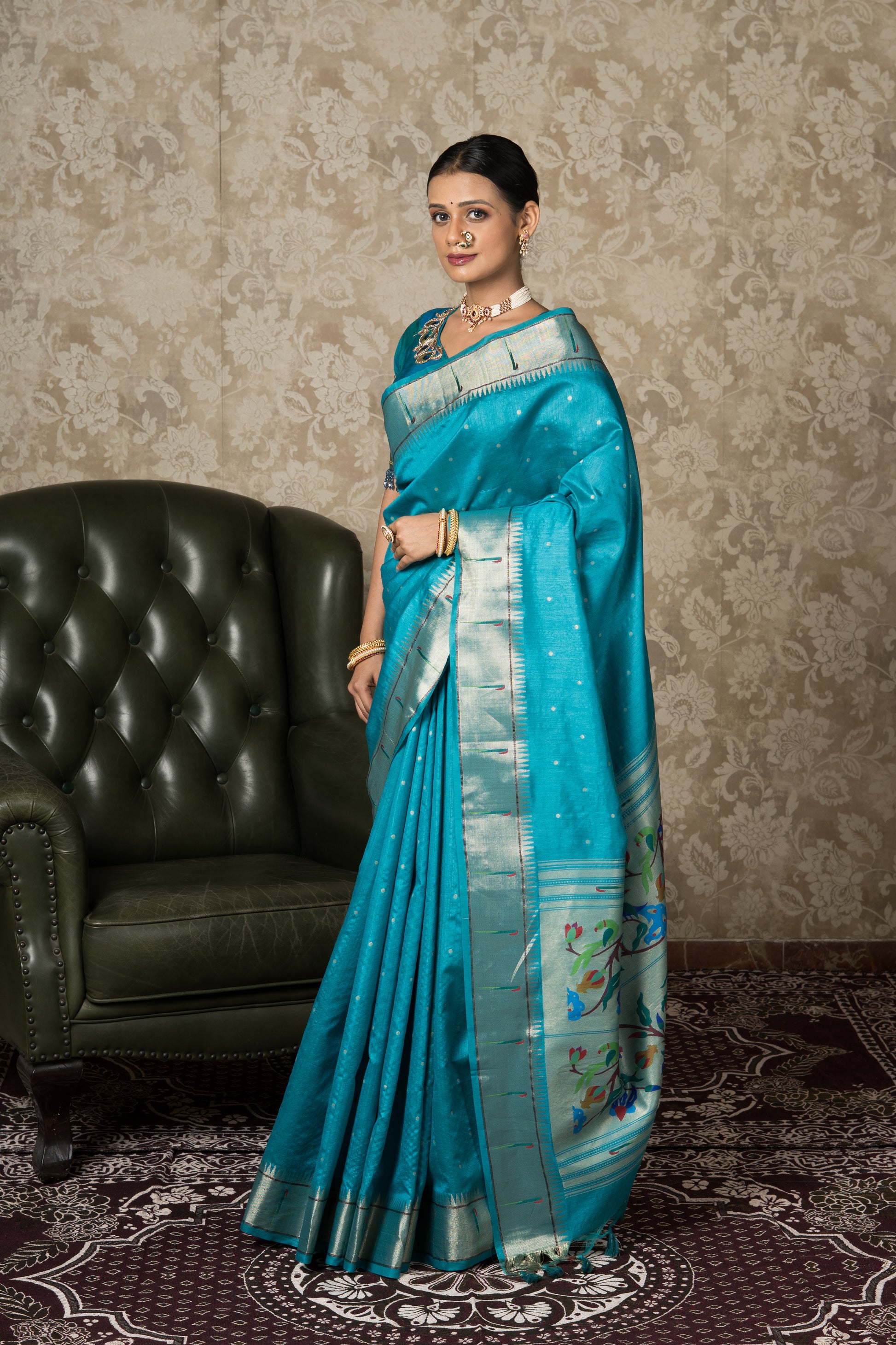 Elevate your wardrobe with our exclusive Sea Green Tussar Silk Paithani Saree. Featuring a beautiful Sea Green hue, this piece effortlessly blends timeless tradition with modern elegance. Ideal for festive occasions or everyday sophistication. Shop now and make it yours.