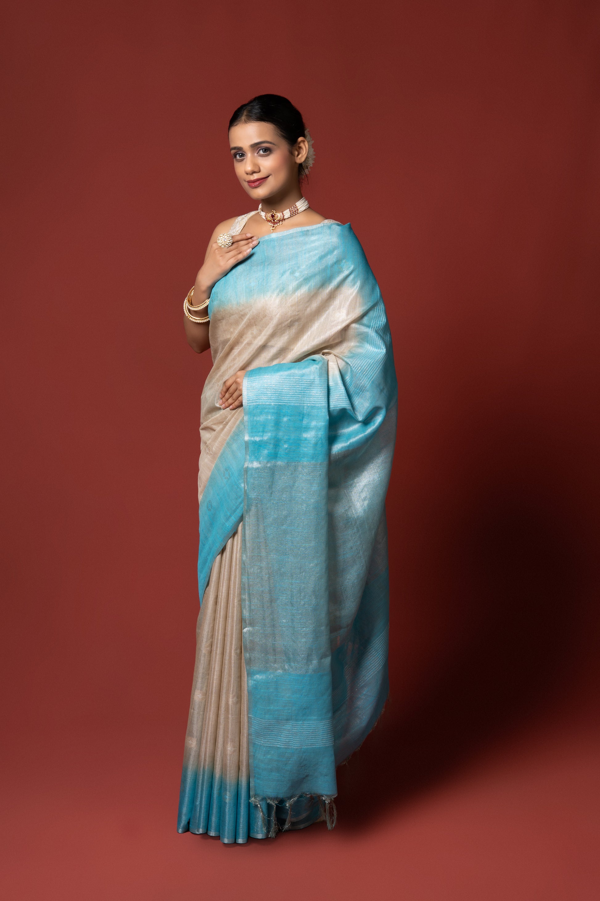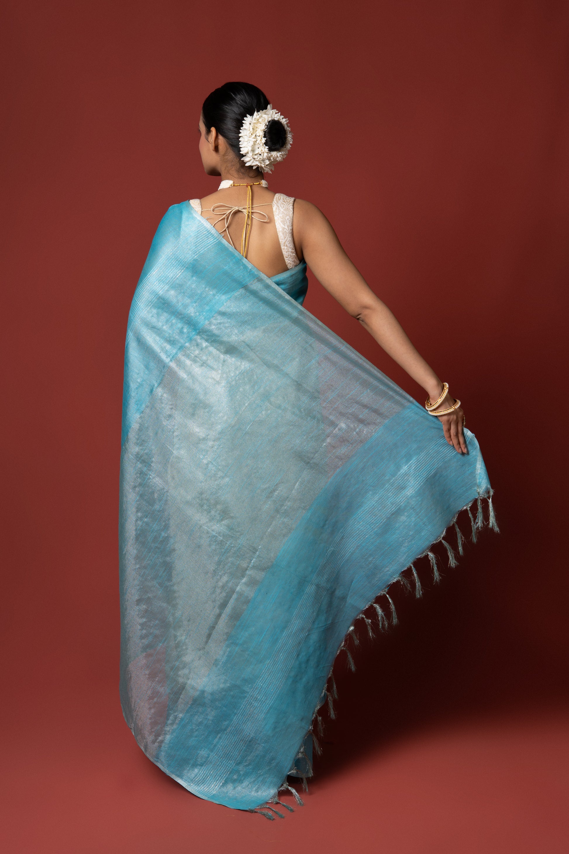 Elevate your wardrobe with our exclusive Sky Blue Tissue Silk Saree. Featuring a beautiful Sky Blue hue, this piece effortlessly blends timeless tradition with modern elegance. Ideal for festive occasions or everyday sophistication. Shop now and make it yours.