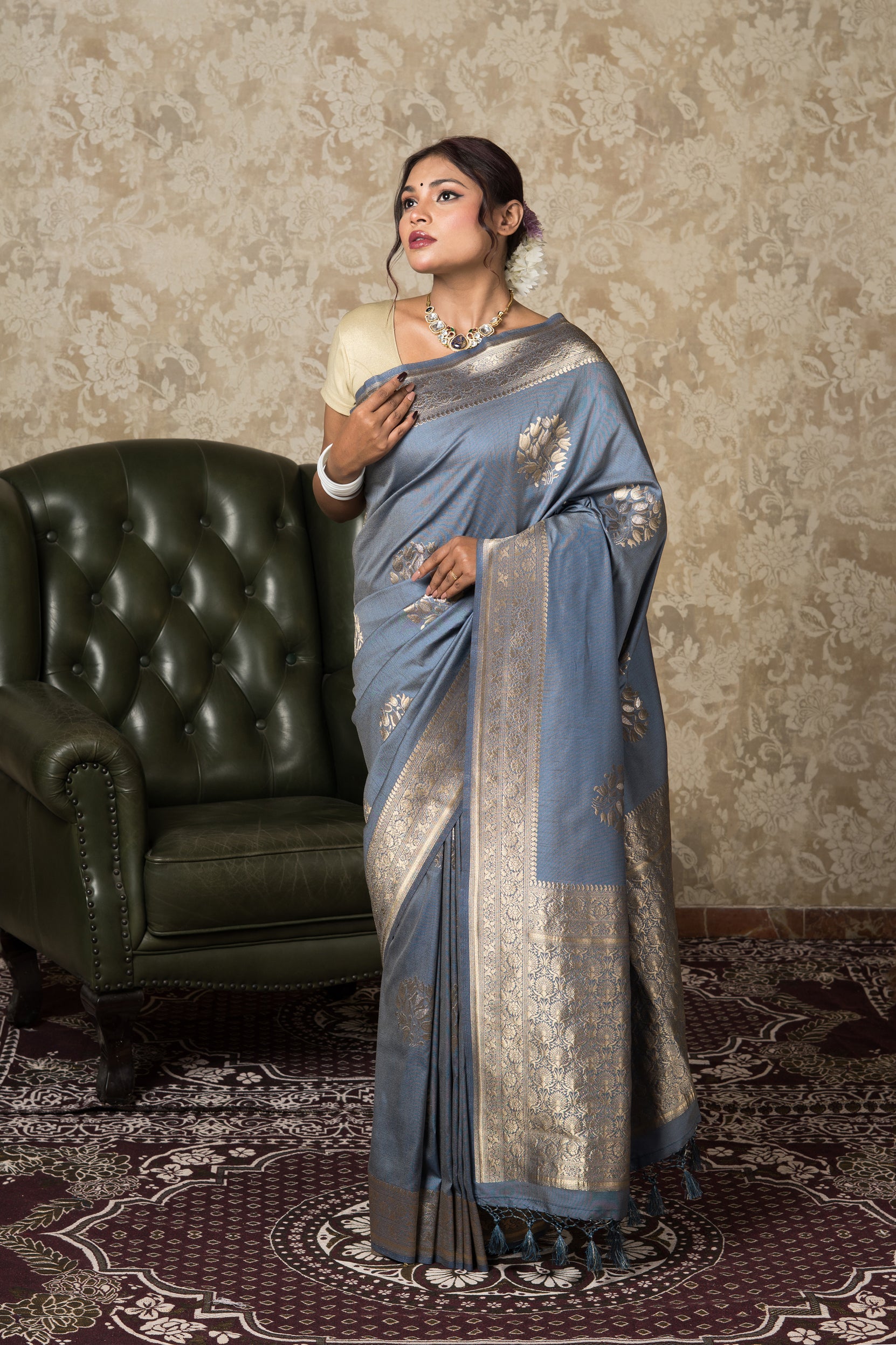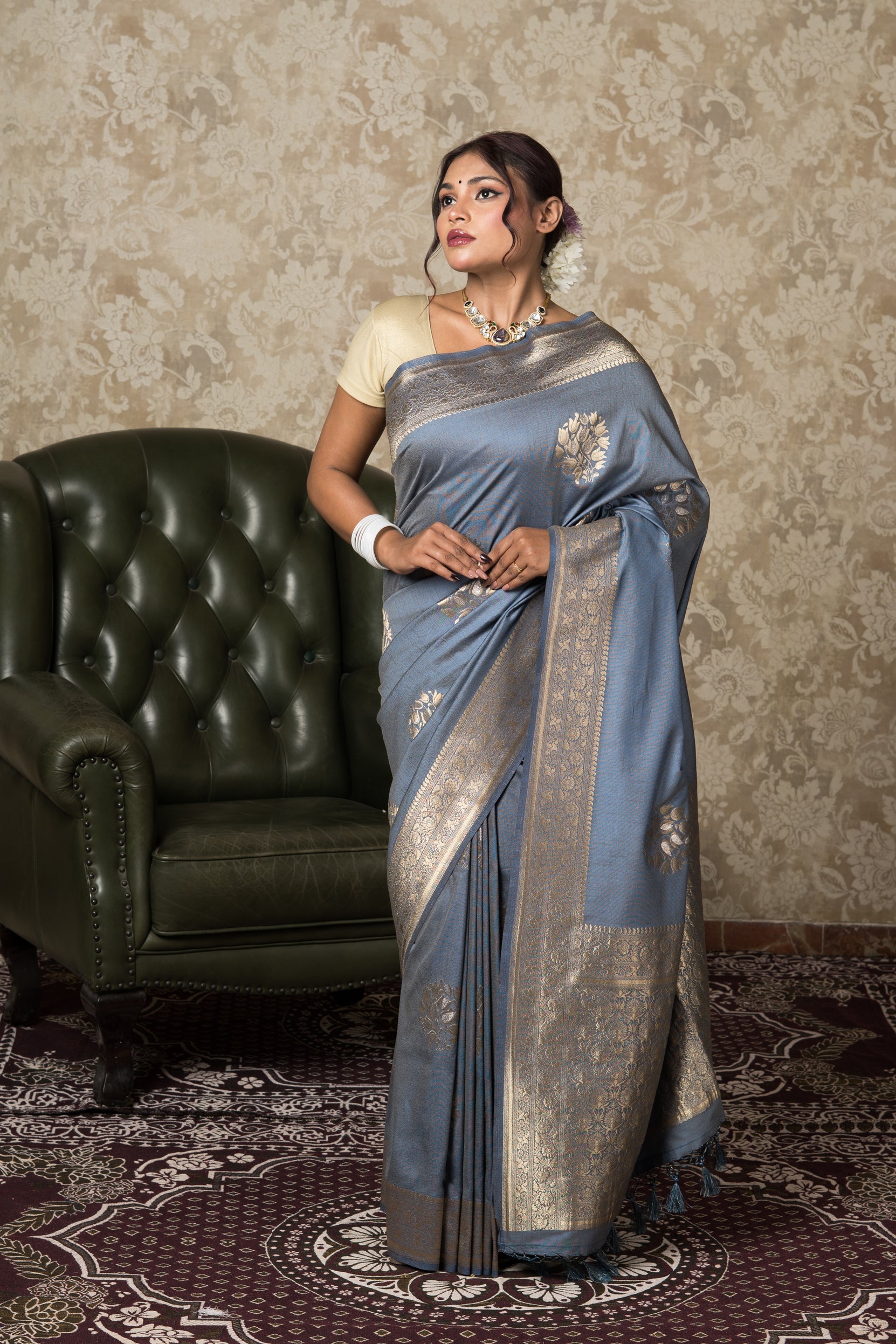 Steel Blue Silk Linen Saree