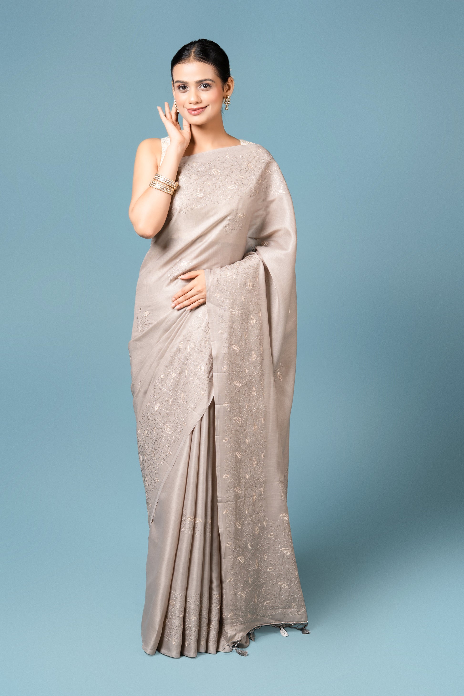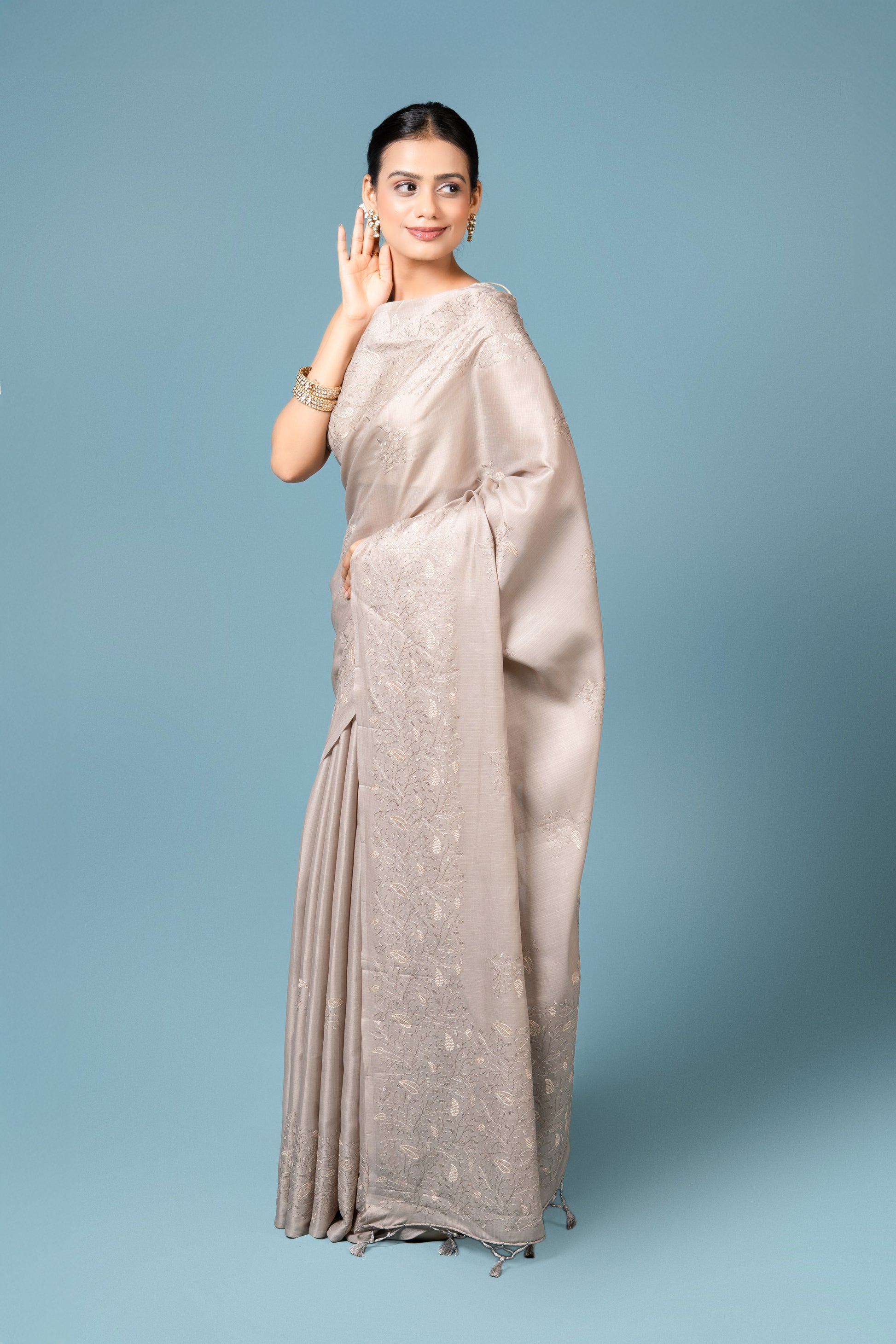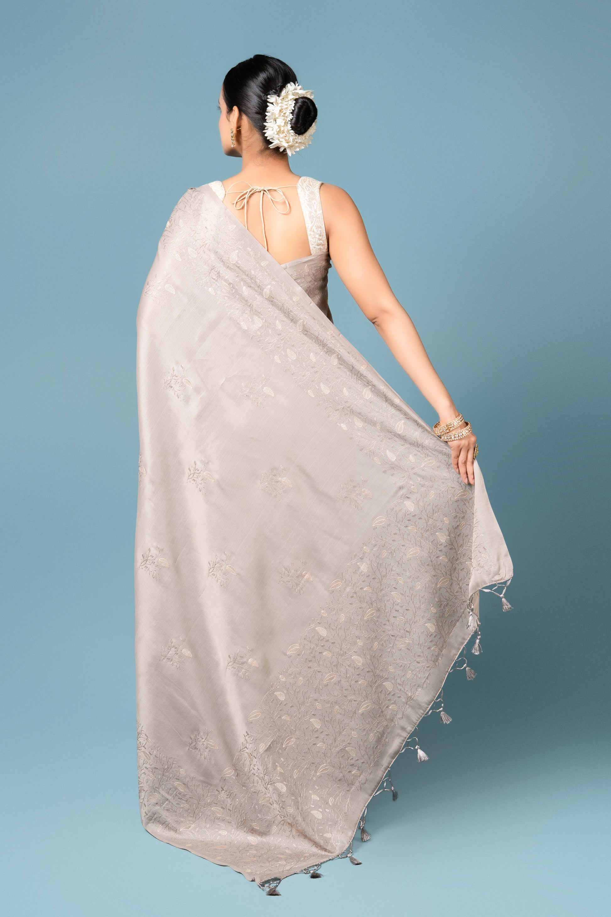Steel Grey Tussar Silk Saree
