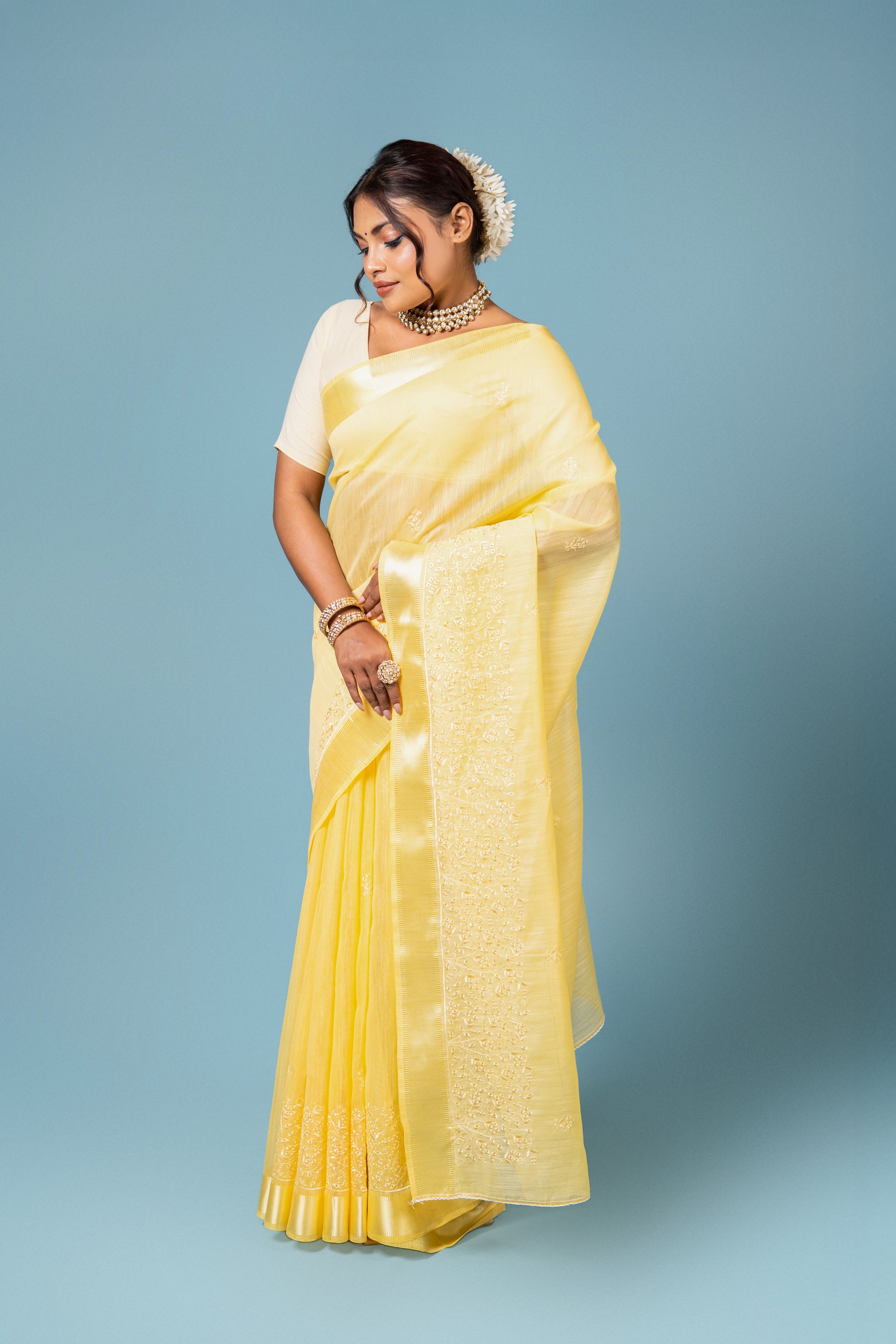 Elevate your wardrobe with our exclusive Yellow Cotton Saree with Thread Work. Featuring a beautiful Yellow hue, this piece effortlessly blends timeless tradition with modern elegance. Ideal for festive occasions or everyday sophistication. Shop now and make it yours.